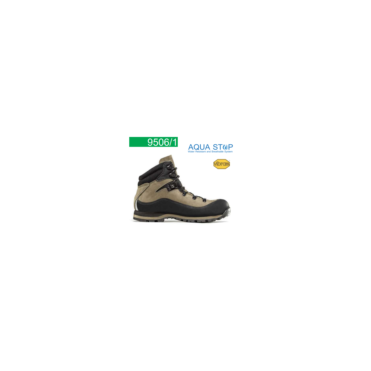 Calzatura trekking in pelle nabuk; Tomaia in un unico pezzo; Fodera AQUASTOP impermeabile e traspirante; Suola Vibram in gomma;