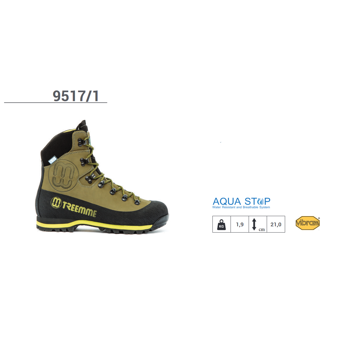 Calzatura trekking in pelle nabuk pieno fiore; Fodera AQUASTOP impermeabile e traspirante; Suola Vibram in gomma microleggera con banda in gomma applicata a mano.