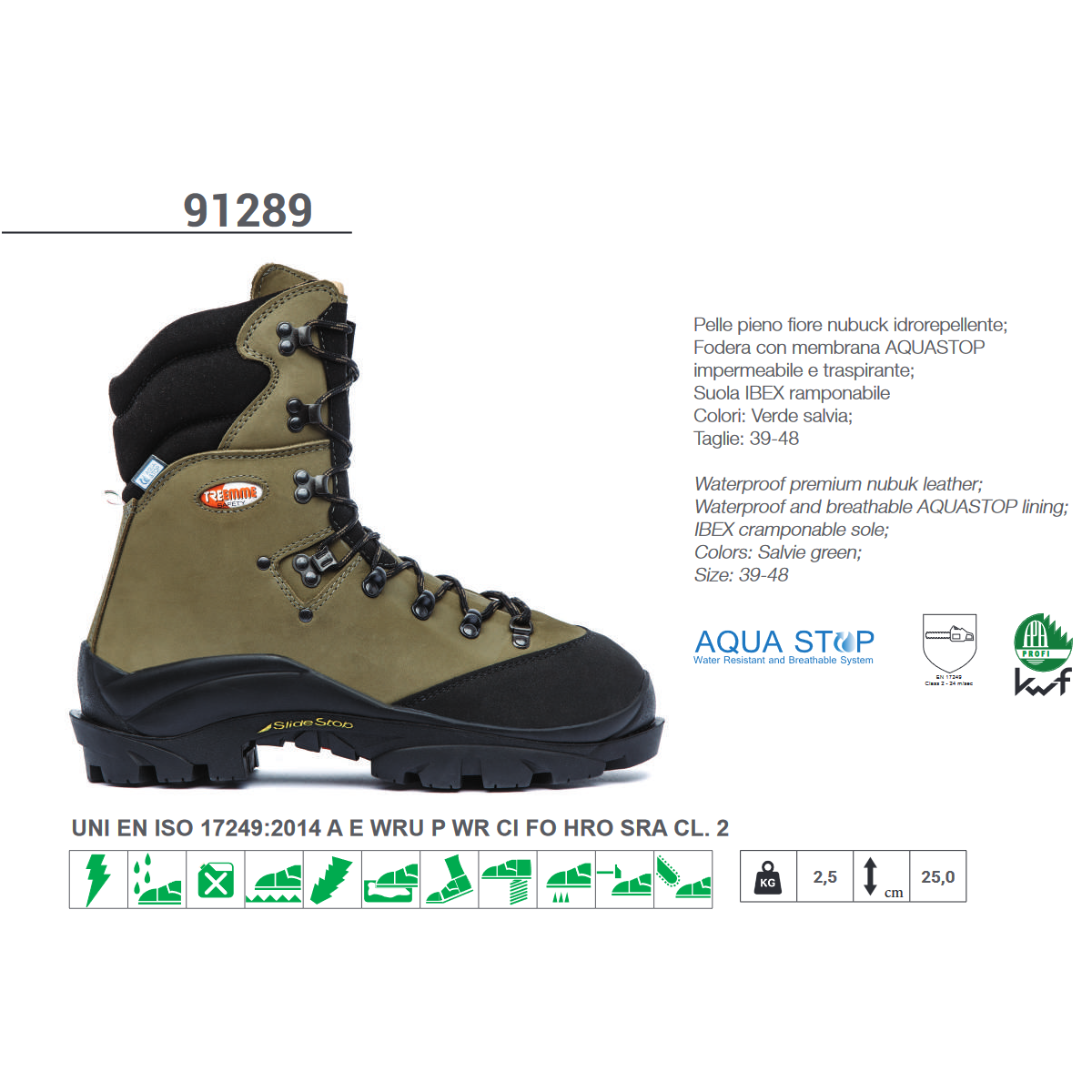 Non ci sono altri prodotti nel carrello. Scarpone Antitaglio con Fodera in Nabuk Art. 91289 Misure Assortite TREEMME
