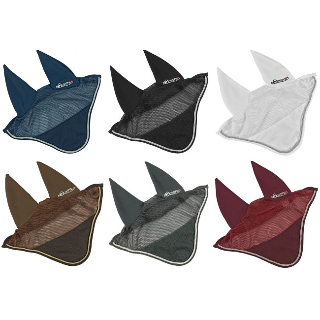 Cuffietta anti-mosche in tessuto tecnico e cotone con passamaneria. 100% cotone con orecchie elasticizzate.