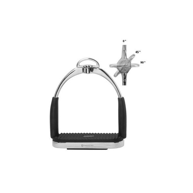 Staffa flessibile con occhiello regolabile (0°, 45° 90°), con panca in gomma nera.