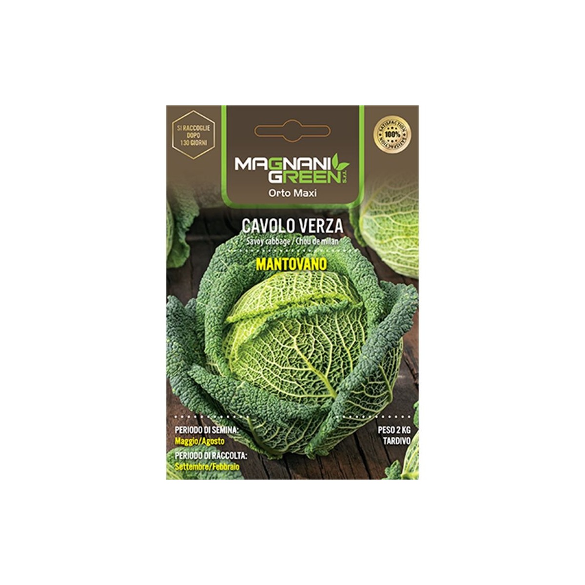 Cavolo verza mantovana è una varietà dal cappuccio tondo di medie dimensioni (2 kg) di colore verde grigio, mediamente bolloso con ottima resistenza al freddo.