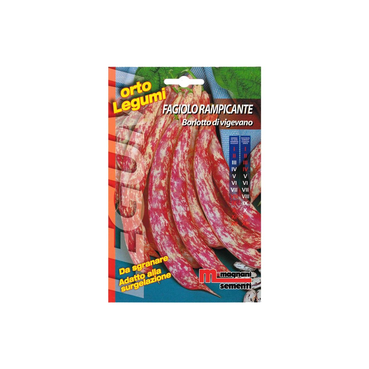 Fagiolo ramp borlotto lingua di fuoco 2 produce baccelli leggermente arcuati, di colore rosa striato di rosso della lunghezza di 14-15 cm. La pianta raggiunge un`altezza di 160-180 cm, il suo ciclo vegetativo dura 70-75 giorni. Il colore del seme è crema striato di rosso violaceo.