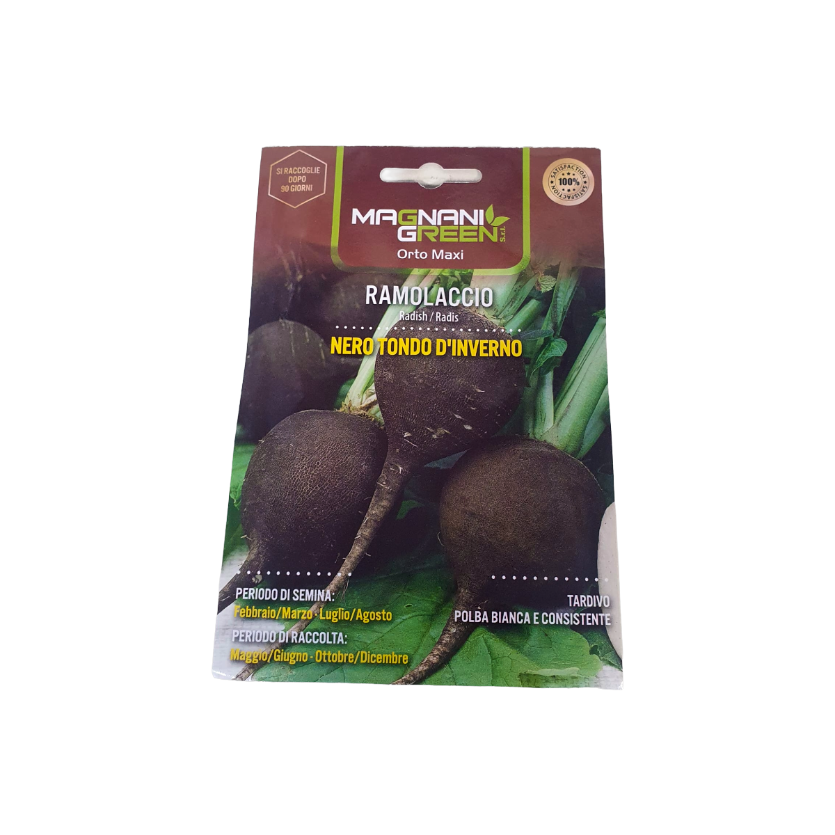 Ramolaccio Nero Tondo d’Inverno, produce una radice rotonda a superficie esterna di colore nerastro e internamente bianca. Parente stretto del ravanello, ha in comune il sapore e la caratteristica piccantezza, ma le dimensioni sono maggiori, la radice può pesare fino a 500 gr. Varietà tardiva.