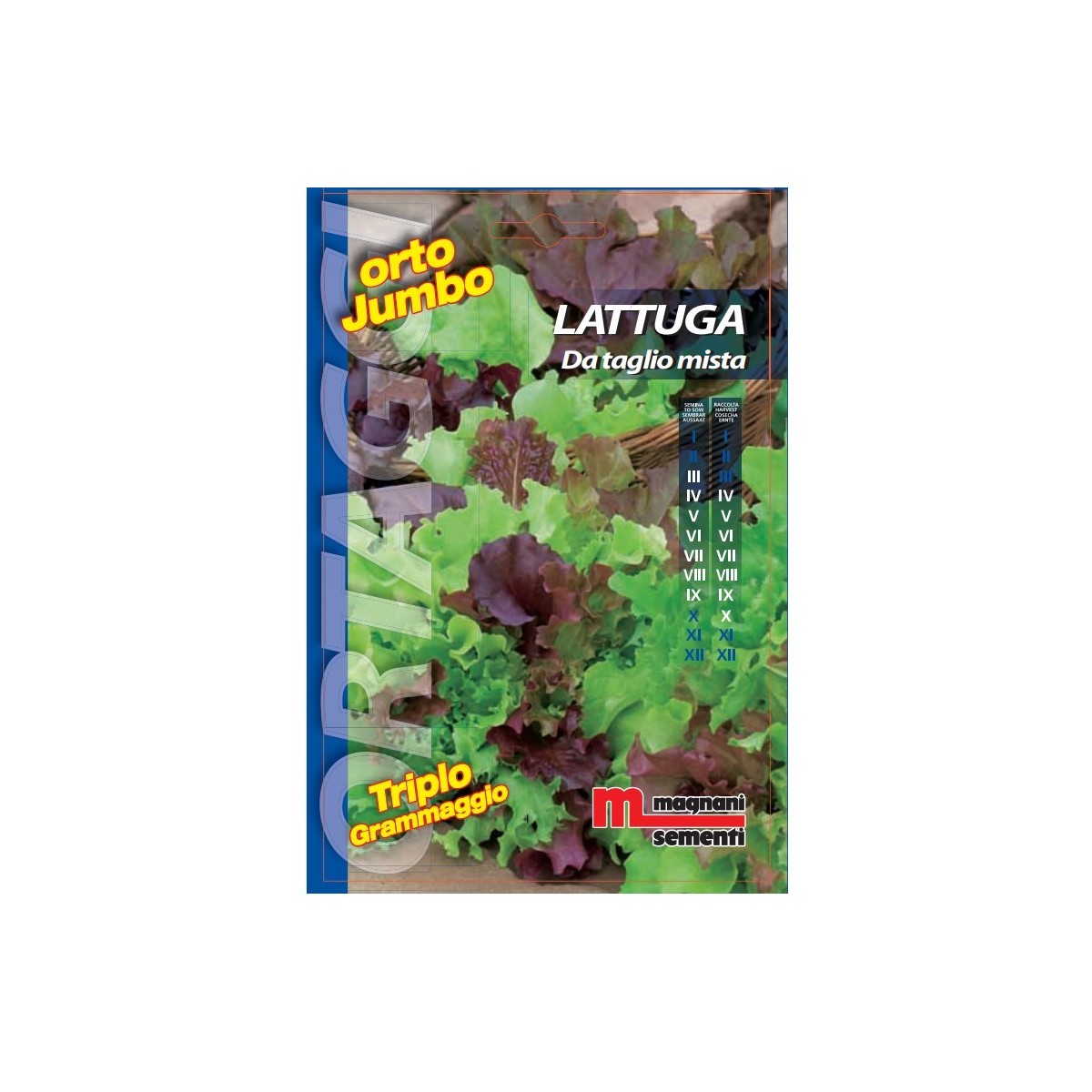Miscuglio di Semi di lattughe da taglio composto da: 20% foglia liscia, 20% taglio biondo riccio, 20% verde riccio, 20% red sails e 20% rossa di trento. Il suo ciclo vegetativo dura 40-50 giorni La distanza di diradamento o trapianto consigliata è 5 cm x 20 cm Si consiglia una Semi na diretta in pieno campo a file, mantenendo il terreno fresco con irrigazioni durante il periodo estivo e dopo il primo taglio la pianta rivegeta rapidamente Semi na: febbraio agosto Bio: no Raccolto: primavera – autunno Adatta al vaso: no Forma del seme: Semi sfusi