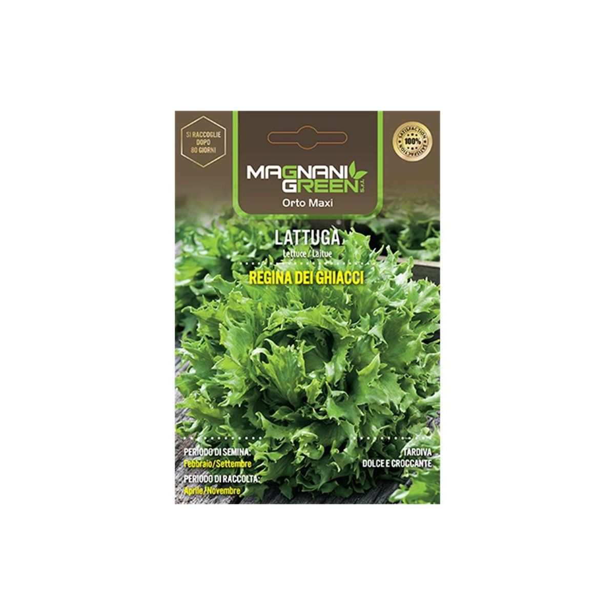 Lattuga regina di ghiaccio è una varietà da cappuccio, con foglie frastagliate e dal cespo di medie dimensioni di colore verde chiaro, e buona resistenza alla salita a seme. Il suo ciclo vegetativo dura 60-80 giorni. La distanza di diradamento o trapianto consigliata è 20 cm x 30 cm. Si consiglia una Semi na diretta in pieno campo a file, mantenendo il terreno fresco con irrigazioni durante il periodo estivo.