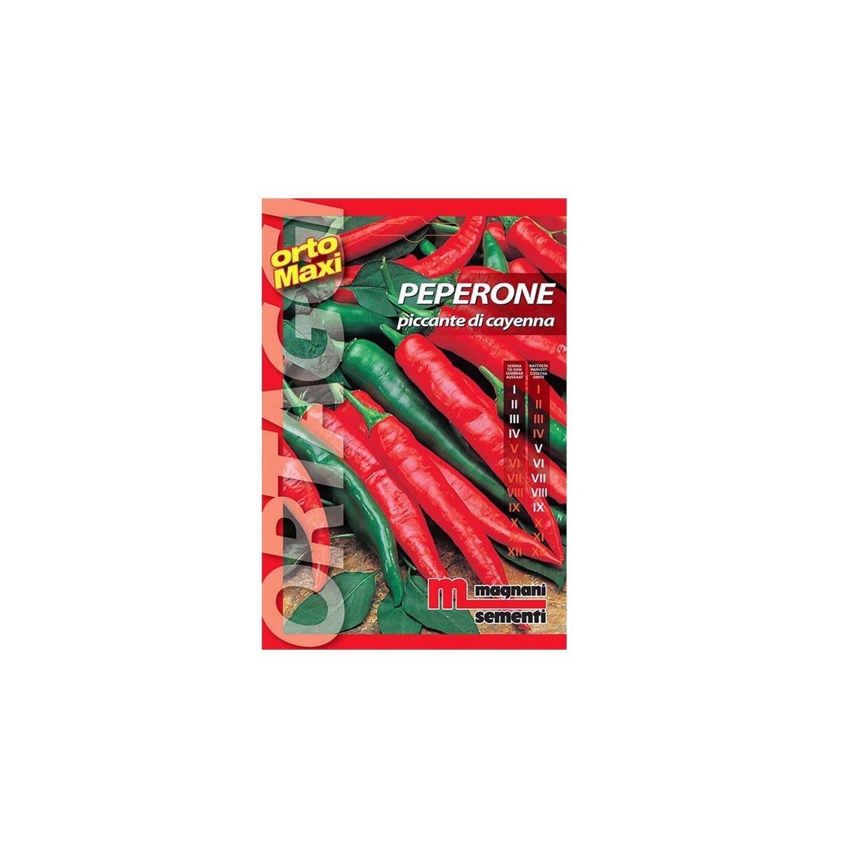 Peperone piccante Cayenna è una pianta cespugliosa a portamento eretto con frutti allungati sottili lunghi fino a 10 cm fortemente piccanti.