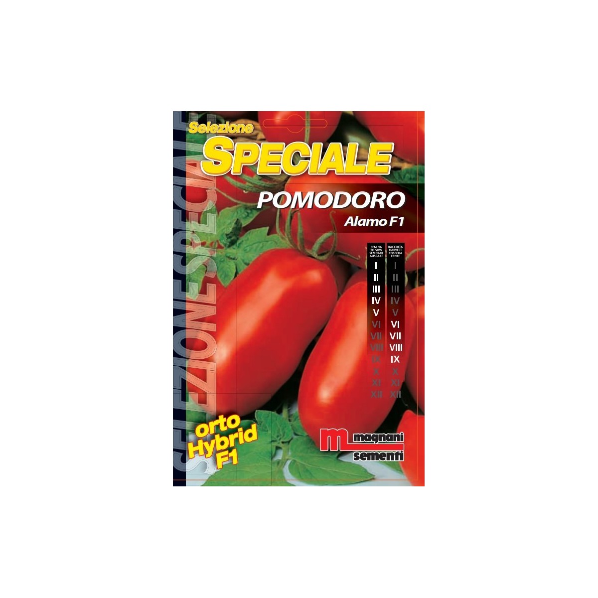 Pianta vigorosa a frutto singolo tipo san marzano, carnoso di colore roso vivo da100-120 gr di peso.