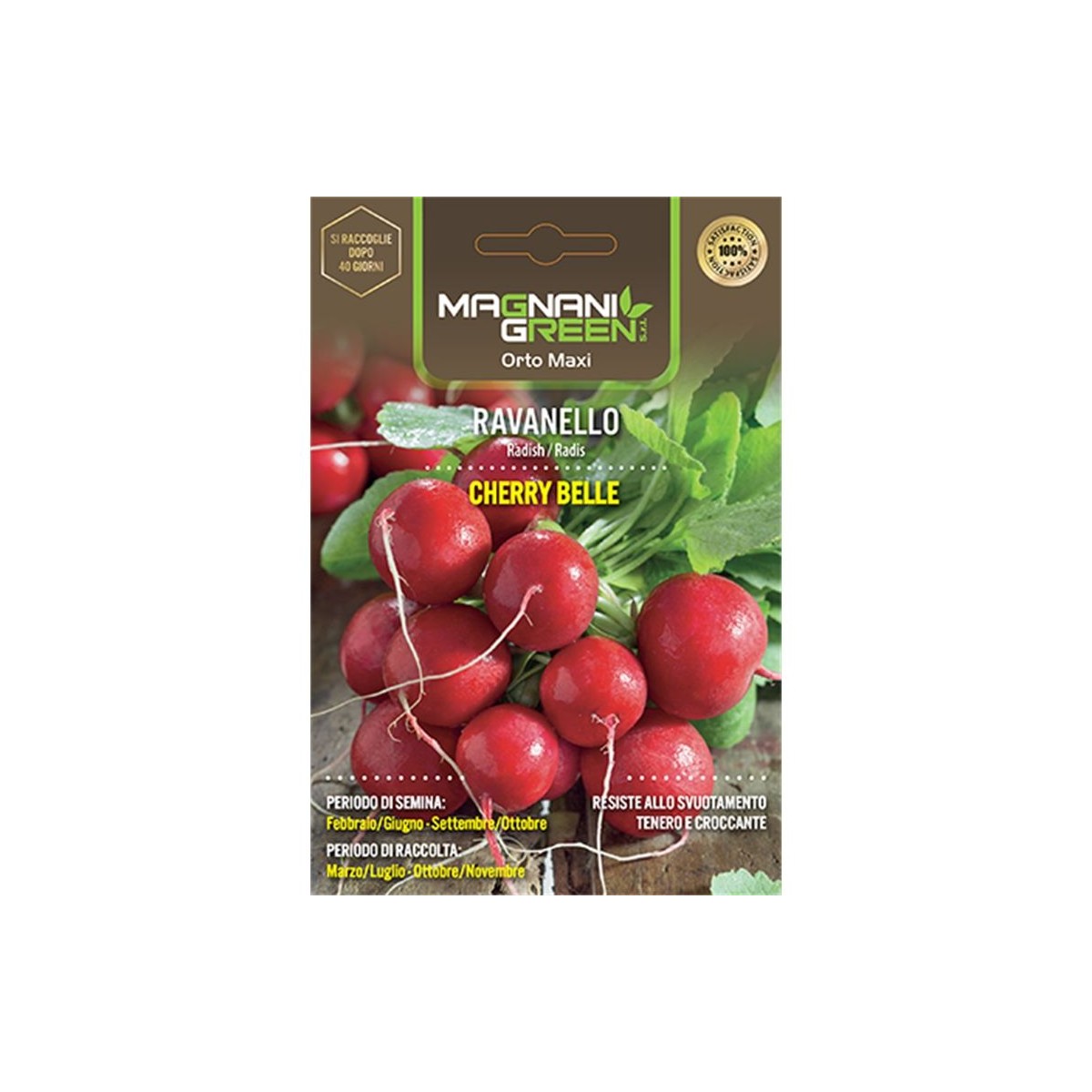 Ravanello cherry belle dalla polpa soda e croccante, ha la radice tonda di colore rosso brillante.