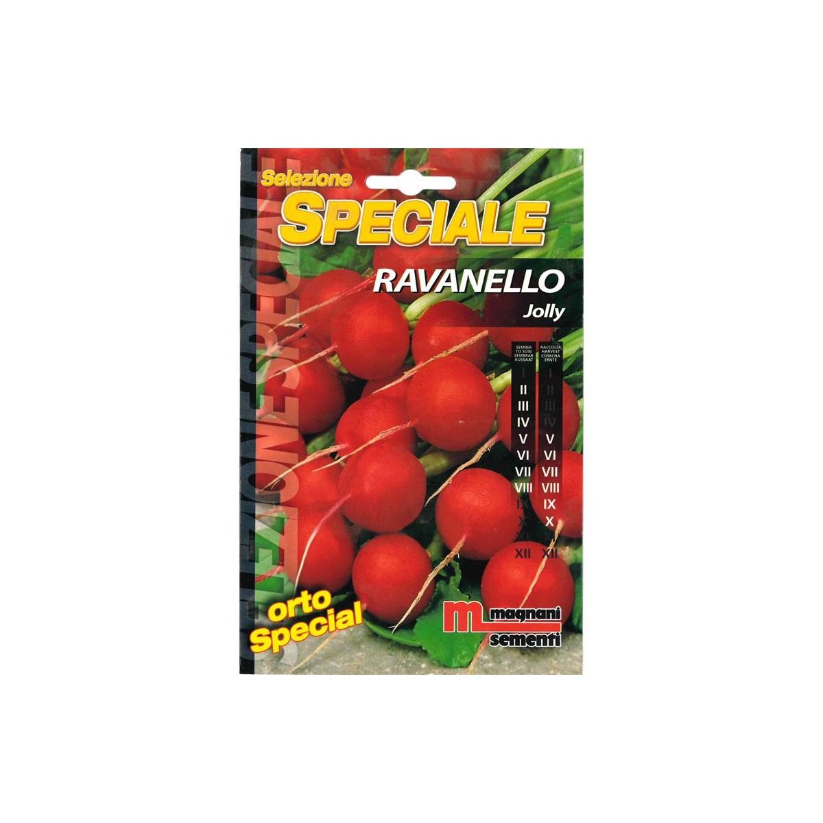 Jolly" ravanello (Raphanus sativus) è una varietà molto produttiva che appartiene ai primi. È inteso per coltivazione sul campo e sotto coperture. È adatto per la coltivazione sia in primavera che in autunno. Sviluppa radici rotonde dalla forma regolare, con diametro da 2,5 a 4 cm, ricoperte da una sottile buccia rossa lucida. La carne assume un colore bianco e ha un sapore dolce-salato. Ciò che è ancora più importante, non diventa conciso. Questa varietà sviluppa foglie corte e forti, consentendo una raccolta e un raggruppamento facili. La varietà "Jolly" è apprezzata per il suo aspetto eccezionale e il suo eccezionale valore gustativo. Va consumato con panini, insalate o come contorno.
