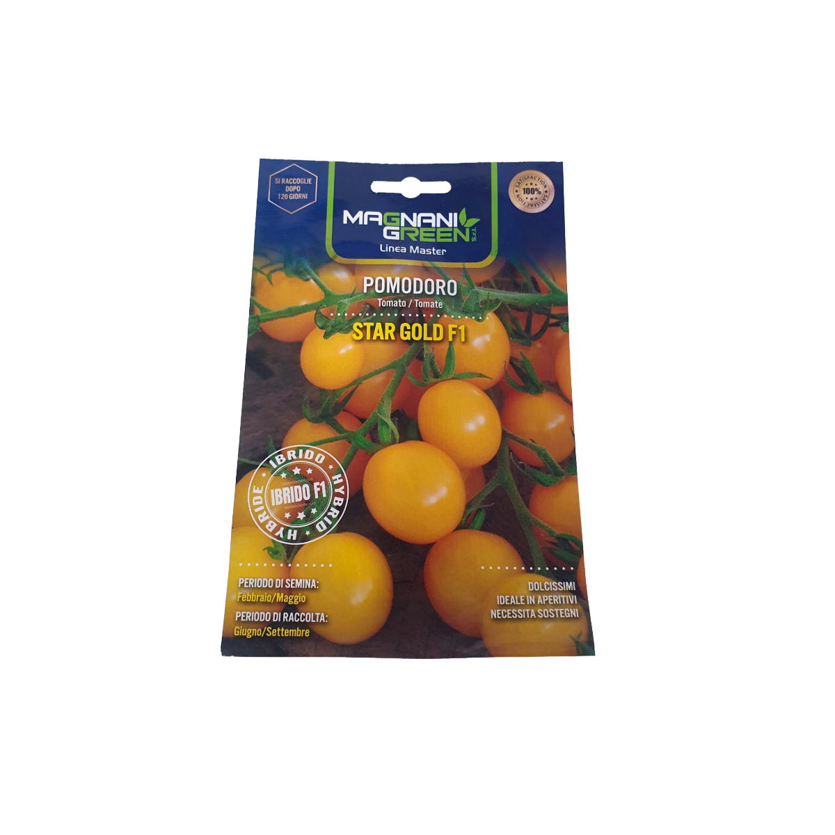 Pianta indeterminata di buona vigoria e precocità. Frutto di tip oovalino color giallo oro a maturazione completa, peso gr.20 circa e calibro pari a 20/25 mm. Sapore dolce mai acido produzione molto elevata. Varietà adatta sia alla serra che a pieno campo.