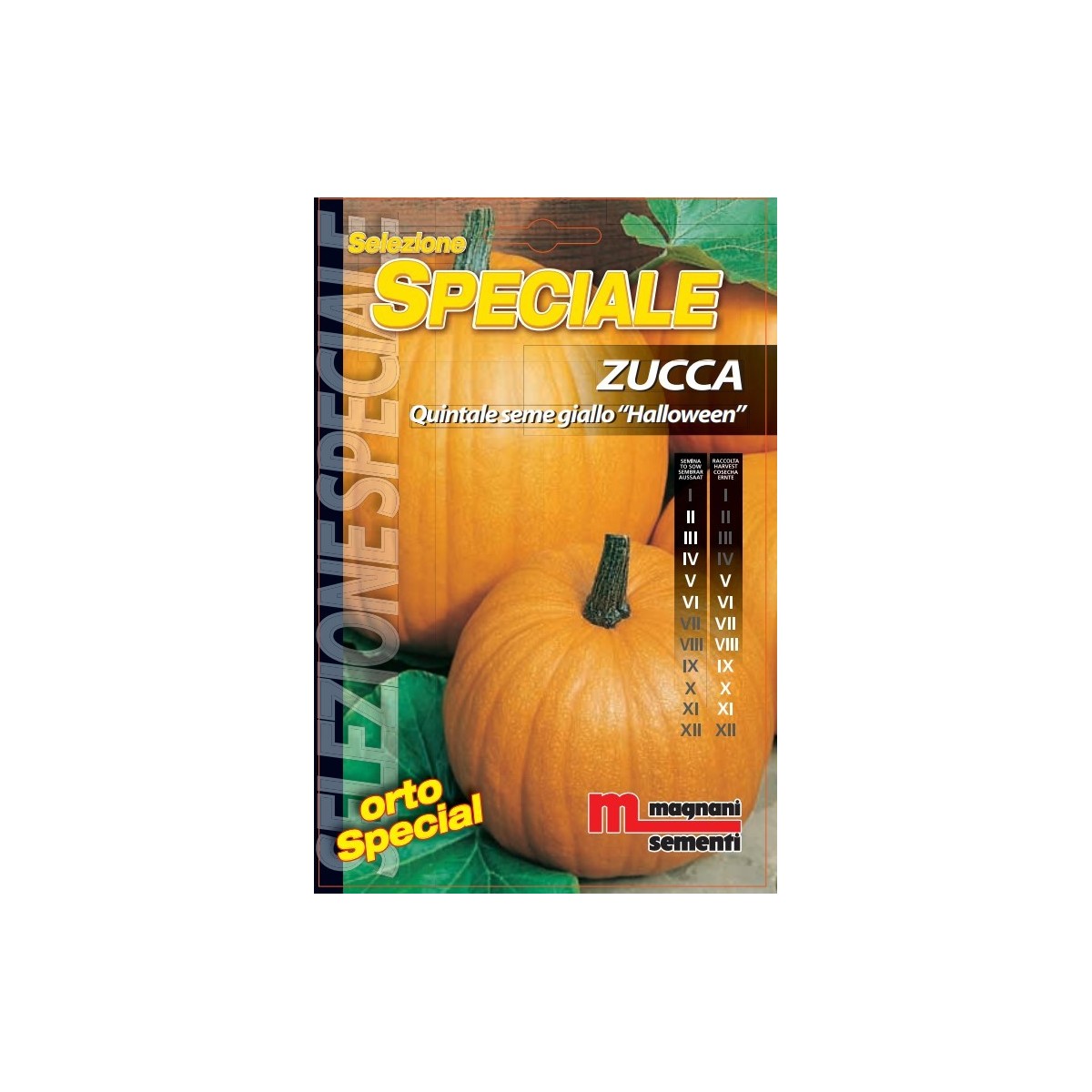 Il frutto zucca di halloween ha una scorza liscia di colore giallo arancio può raggiungere pesi elevati fino a 100 kg.