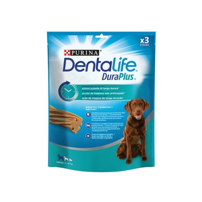 Dentalife DuraPlus è l'innovativo snack dentale dalla forma intrecciata e dalla consistenza compatta per una masticazione più lunga.Scientificamente provato per la riduzione della formazione del tartaro, il tuo cane adorerà masticare questo snack dalla lunga durata, non vorrà più smettere di farlo e una masticazione più lunga equivale a una pulizia più profonda.