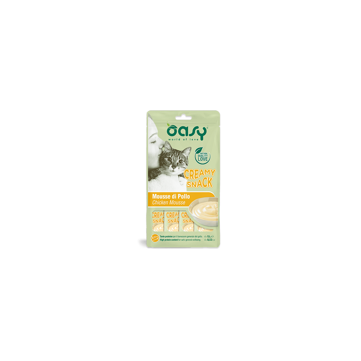 Non ci sono altri prodotti nel carrello. Gatto - Snack Creamy Mousse di Pollo 4x15 gr OASY