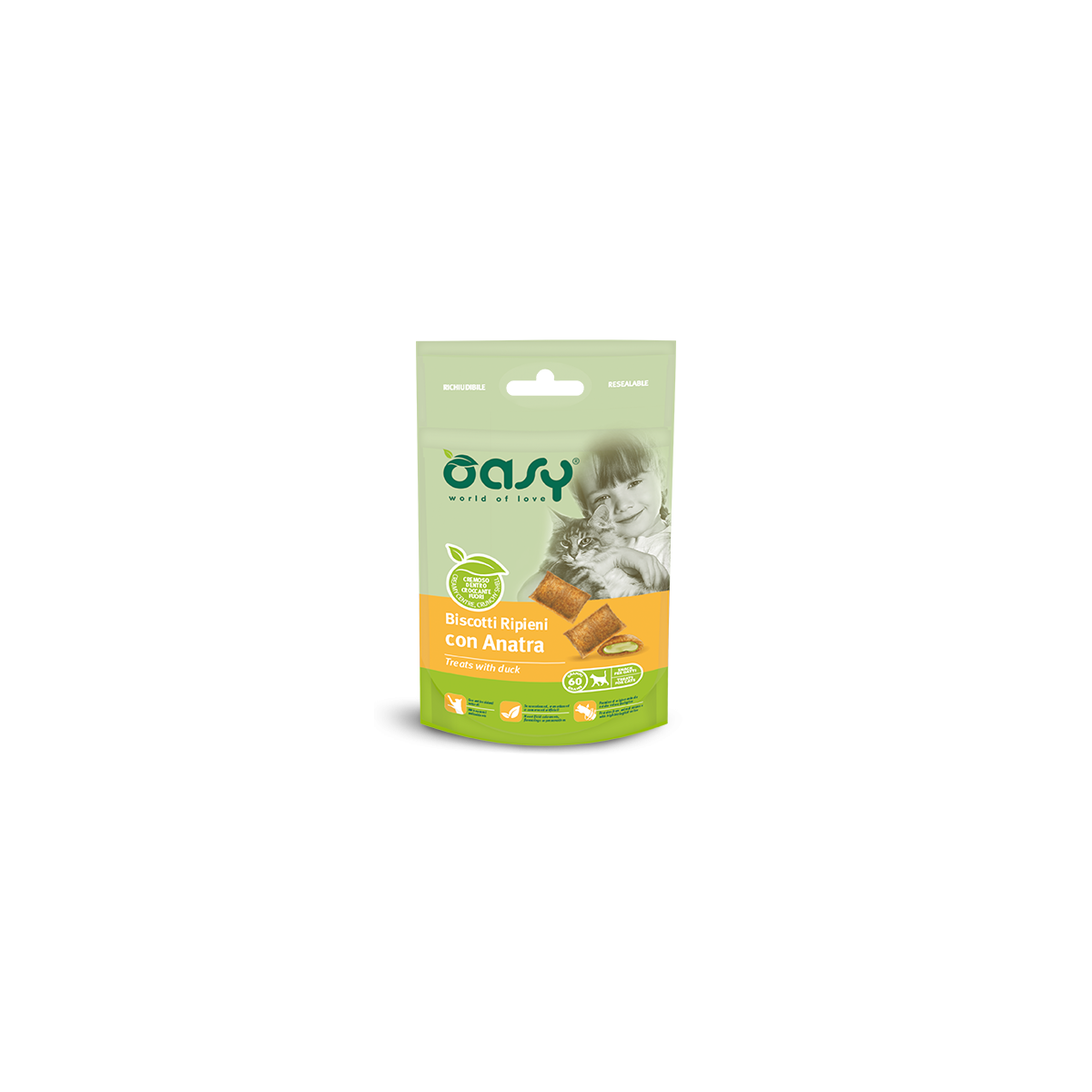 Deliziosi biscotti croccanti dal cuore cremoso con antiossidanti naturali e proteine di origine animale ad alto valore biologico: lo snack perfetto da offrire al tuo gatto in ogni momento.
