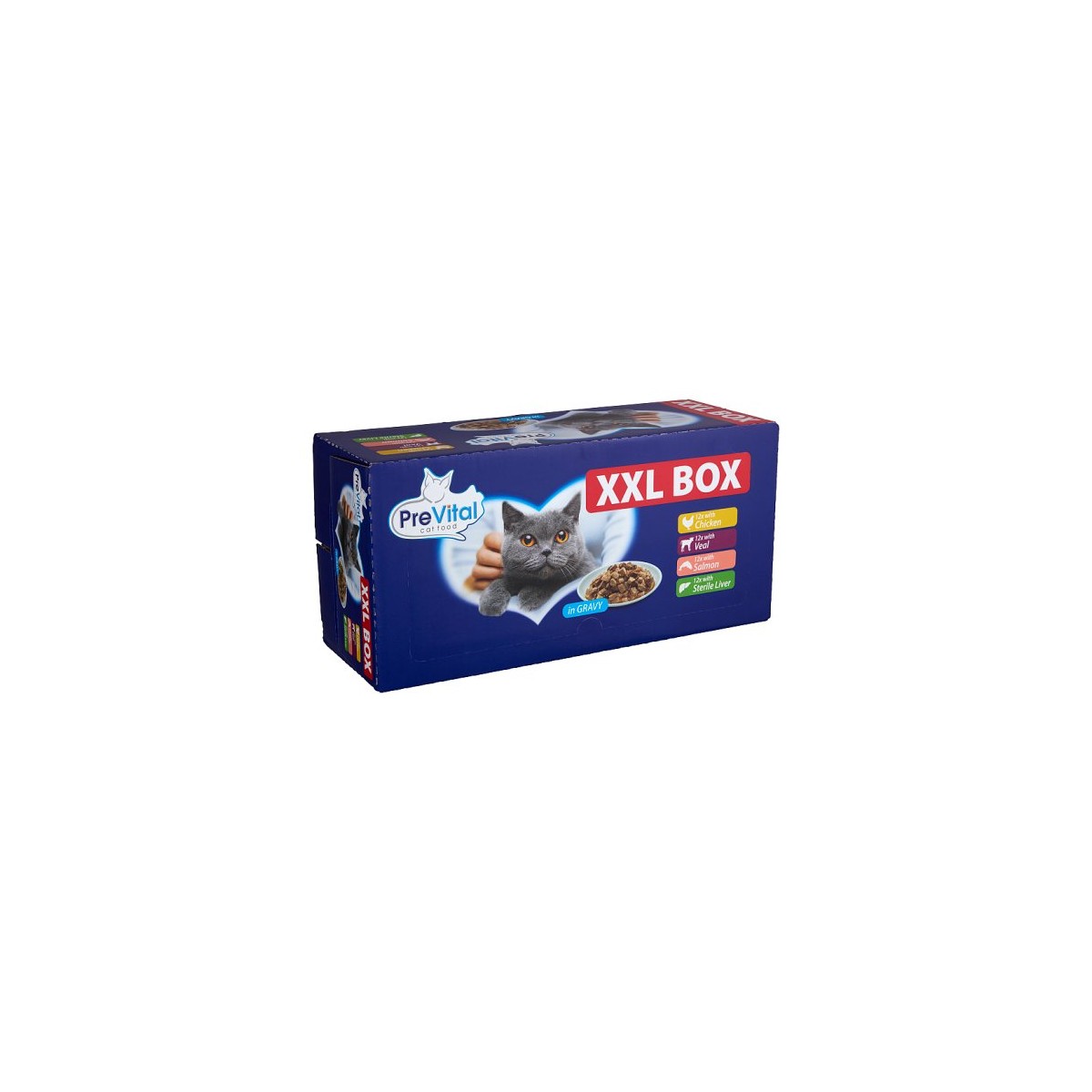 Prevital XXL Box per Gatti con Pollo, Vitello, Salmone e Fegato in Salsa da 48bstx100gr