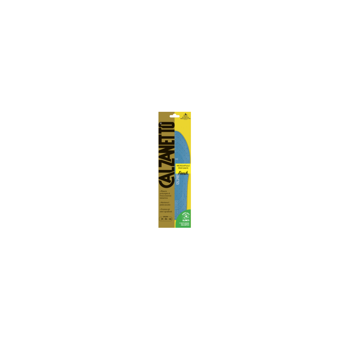 In lattice e tessuto con microcapsule profumate, mantiene il piede asciutto e libero da cattivi odori. Lavabile a mano in acqua fredda. Misura universale dal 24 al 46.