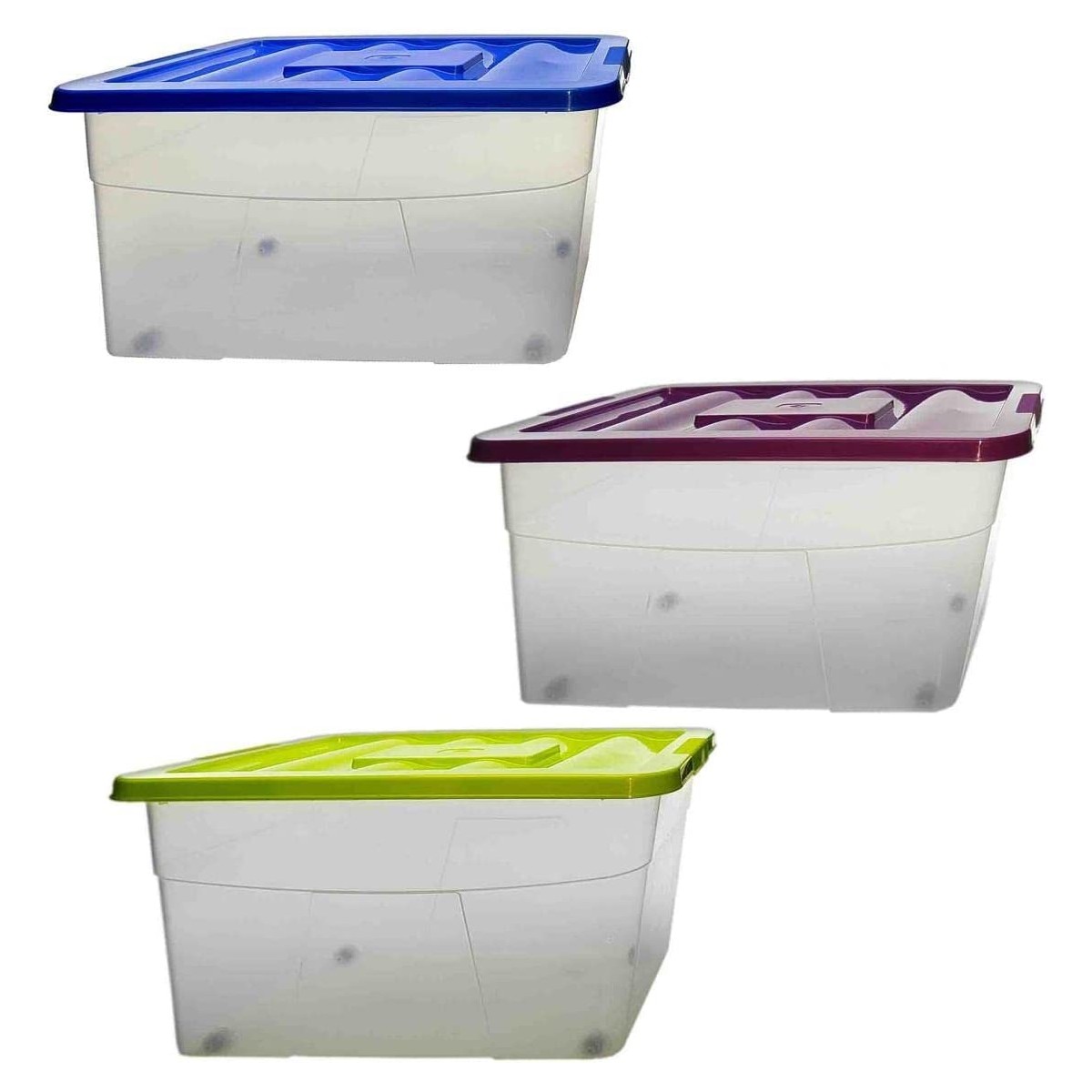 Dodo Box contenitore trasparente con coperchio colorato pieghevole ideale per biancheria, oggetti ingombranti o nel cambio di stagione.