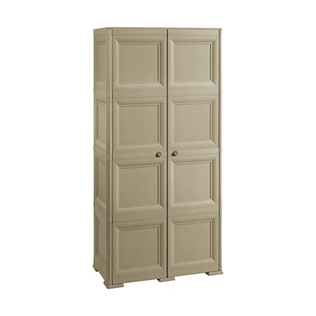 Omnimodus. Armadio a otto vani dotato di due puntali e chiuso da ante a riquadri lisci effetto legno.