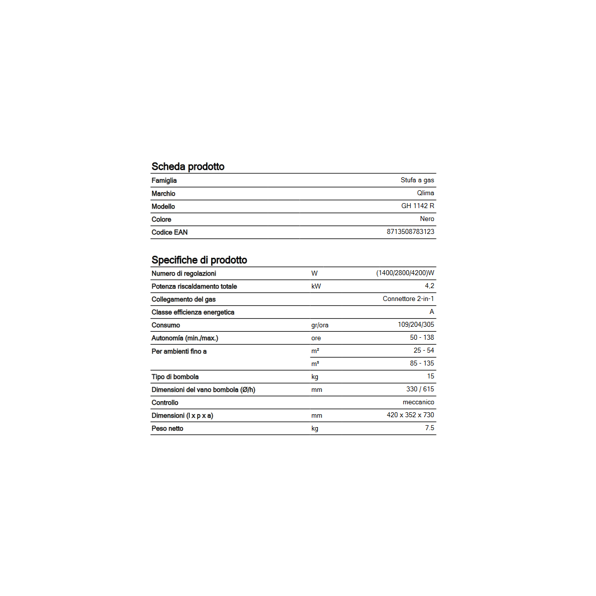 Stufa a Gas Infrarossi GH1142R QLIMA