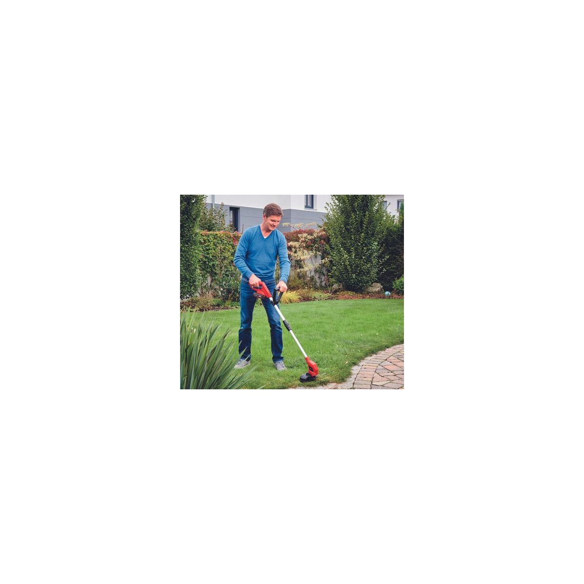 Con il tagliabordi a batteria GC-CT 18/24 Li si possono rimettere a nuovo giardini e prati delimitati da angoli e bordi. La manutenzione del verde domestico è facile, veloce e soprattutto flessibile. Il tagliabordi a batteria è un componente ad alte prestazioni della serie Power X-Change. Le batterie di questa famiglia possono essere utilizzate in tutti gli apparecchi del settore giardino e officina. Il tagliabordi è dotato di Flowerguard di Einhell. Fiori e piante vengono protetti efficacemente da possibili danni. L'asta telescopica si adatta perfettamente alle necessità del giardino domestico e permette di lavorare senza stancarsi. Dotato di rotazione delle lame da 8.500 giri al minuto, il tagliabordi a batteria è un aiutante perfetto che aiuta a mantenere l'erba del prato sempre verde, in strutture esterne e in punti difficilmente raggiungibili del giardino. La larghezza di taglio delle lame raggiunge i 24 centimetri. Nella fornitura sono incluse 20 lame in plastiche, una batteria da 2,0 Ah e un caricatore di questa serie.