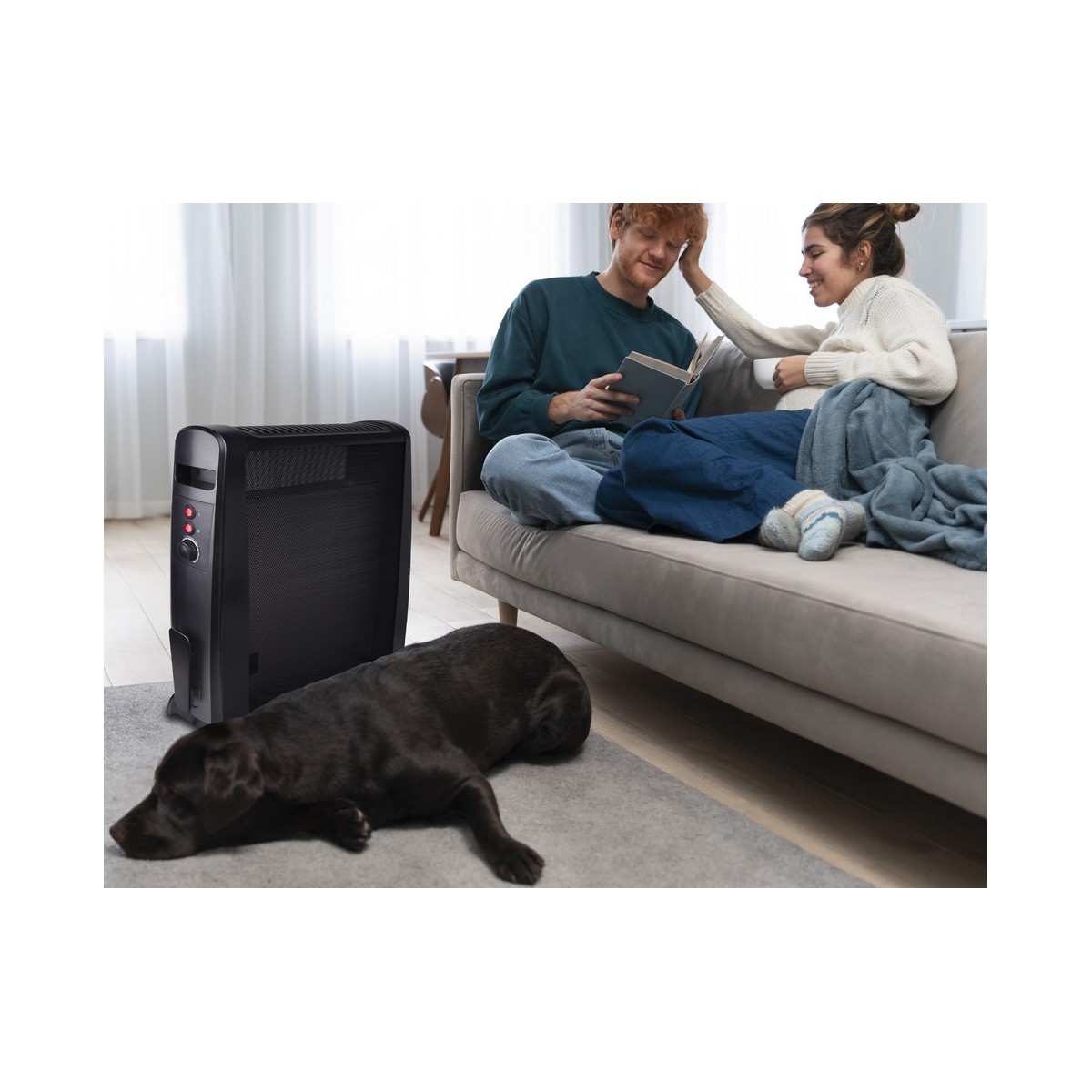 Radiatore elettrico con pannello in Mica. Si riscalda molto velocemente e mantiene la temperatura, il termostato è regolabile.