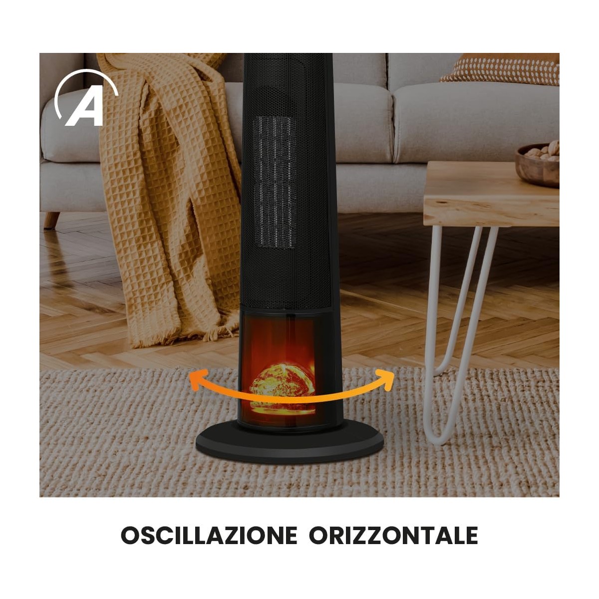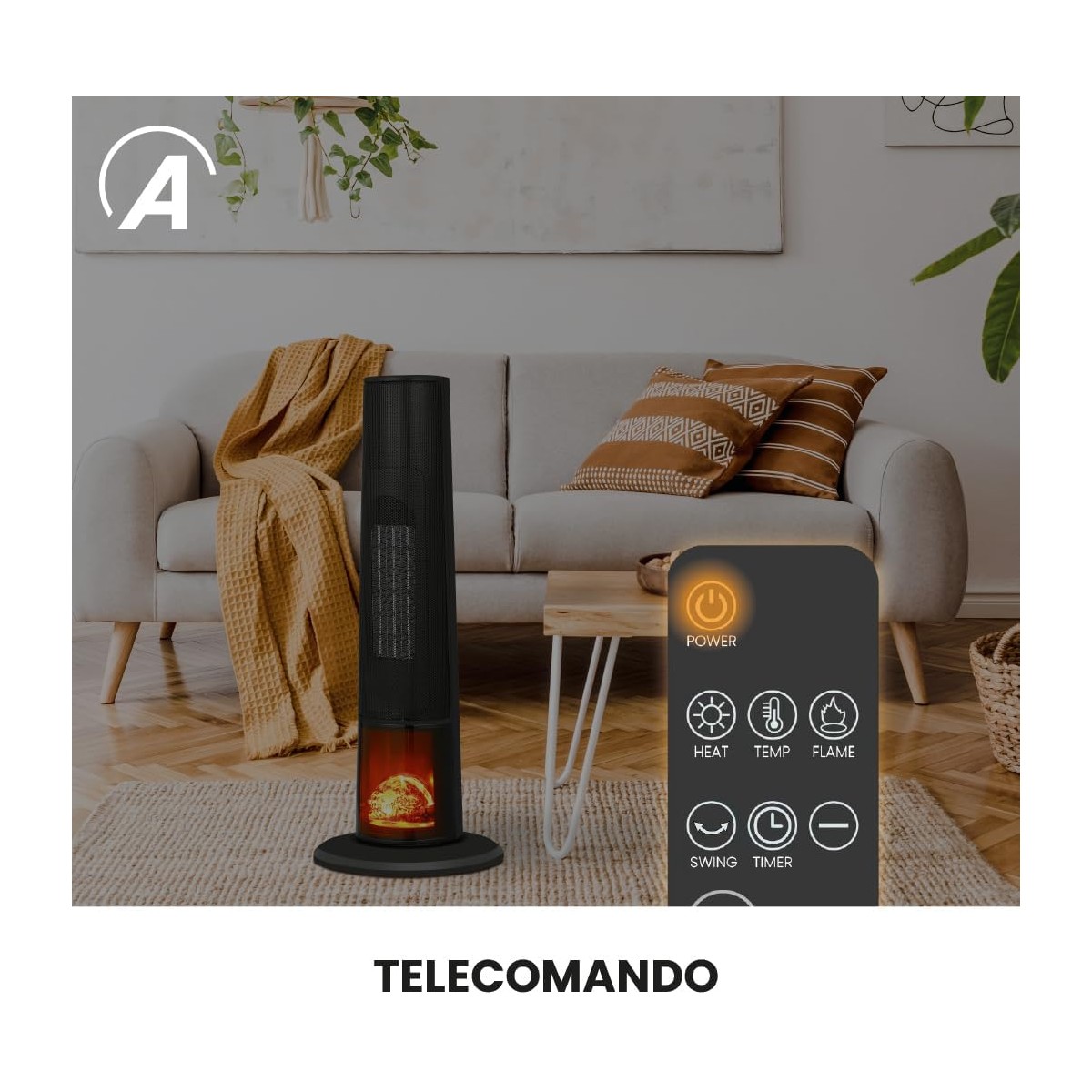 - POTENTE E D'EFFETTO: termoventilatore a torre PTC efficiente e dal grande potere riscaldante grazie ai 2000 W con l'opzione fiamme realistiche 3D crea un’atmosfera calda e romantica in ogni stagione