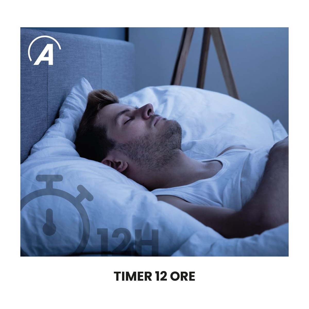 - PANNELLO DI COMANDO: Dotato di pannello touch per regolare la temperatura e di telecomando per il controllo direttamente da remoto. Timer impostabile fino a 12 ore.