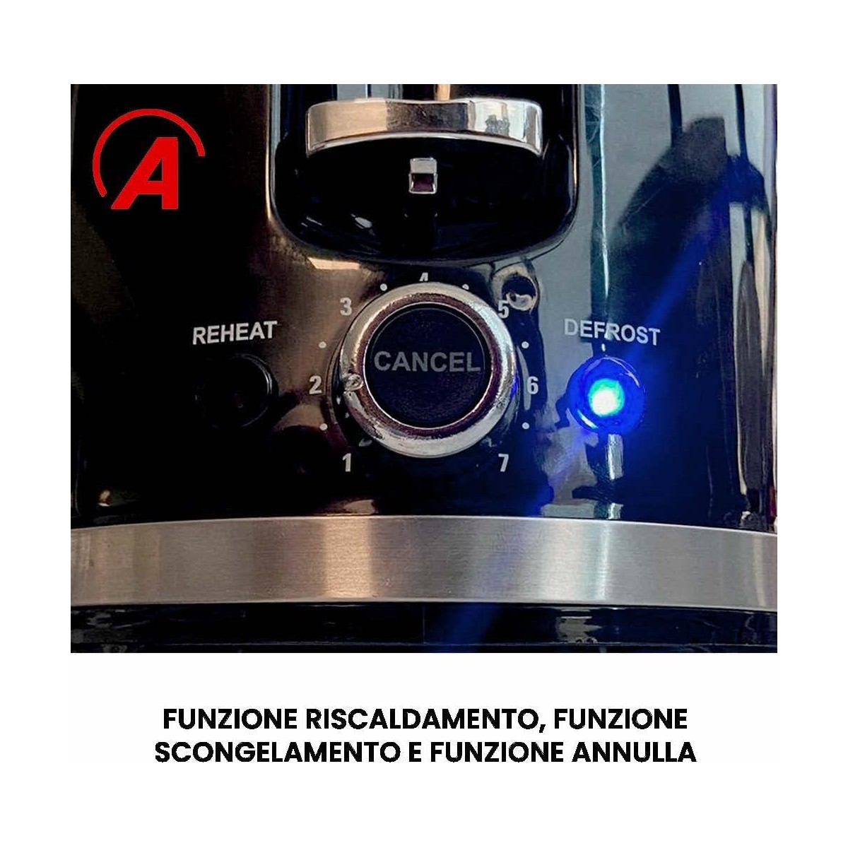 Tostapane 2 fette con pinze in acciaio inox. Timer con 7 livelli progressivi di tostatura. Funzioni di riscaldamento per scaldare toast già fatti, scongelamento per tostare il pane congelato senza bruciarlo e interruzione di cottura. Vassoio raccogli briciole removibile per una facile pulizia. Piedini antiscivolo. Con avvolgicavo, facile da riporre.