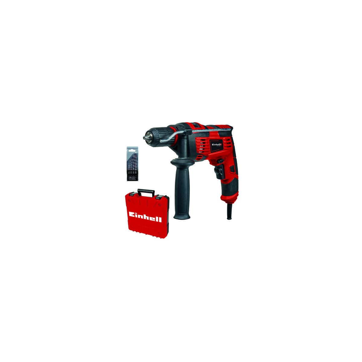 Il trapano a percussione TC-ID 720/1 E Kit di Einhell offre una potente funzione di trapanatura e foratura con percussione su materiali quali legno, metallo e cemento. Le prestazioni sono adattabili al tipo di materiale e di uso grazie al sistema elettronico di regolazione del numero di giri, dalla possibilità di rotazione a destra / sinistra e dal blocco dell’interruttore per il funzionamento continuo. Le grandi impugnature ergonomiche contribuiscono alla comodità durante l’uso. L’impugnatura supplementare con nervature di sicurezza è saldamente fissata. Il robusto mandrino autoserrante da 13 mm permette di installare l'accessorio desiderato. Il trapano a percussione è idoneo anche per l’installazione su un supporto con collo di serraggio di 43 mm. Realizzata in metallo massiccio, l'asta di profondità di perforazione è a regolazione continua. Nella dotazione è incluso un set di 5 punte per muratura (Ø 4-10 mm) all’interno della pratica valigetta E-Box Basic.
