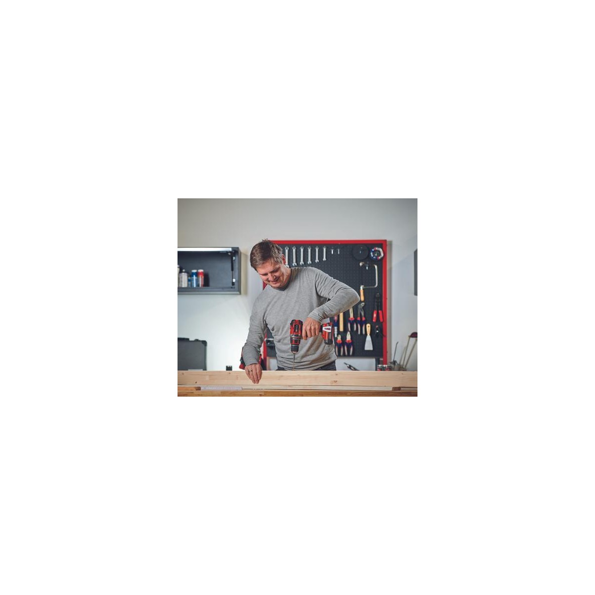 Il trapano avvitatore a batteria Einhell TP-CD 18/50 Li BL Solo è un robusto tuttofare per gli appassionati di fai da te che desiderano eseguire lavori che richiedono prestazioni solide per risultati rapidi ed esatti senza sacrificare la maneggevolezza. Il motore brushless del trapano fornisce più potenza e funziona più a lungo rispetto a un normale motore a spazzole di carbone. Come membro della famiglia Power X-Change, il trapano avvitatore a batteria è sempre pronto all'azione: le batterie agli ioni di litio di alta qualità del sistema resistono all'autoscarica tipica delle batterie. Inoltre, tutti i pacchi batteria della serie possono essere combinati con lo strumento. Il trapano avvitatore a batteria di Einhell ha un ingranaggio a 2 velocità per un avvitamento rapido e una foratura potente. Per tutta la potenza del trapano, il controllo elettronico della velocità assicura che venga erogata la giusta potenza per il particolare materiale e applicazione. Durante la perforazione, enormi forze agiscono sul materiale, sul trapano e, naturalmente, sulla persona che aziona il trapano. Il design ergonomico e l'impugnatura morbida offrono una maneggevolezza eccezionalmente facile e una presa salda e sicura. La luce a LED offre una buona visione di ciò che stai facendo quando la visibilità è scarsa, ad esempio nei cantieri e nei capannoni o in aree di difficile accesso. La batteria ricaricabile e il caricabatterie della serie di sistemi Power X-Change sono disponibili separatamente, ad es. come praticostarter kit.