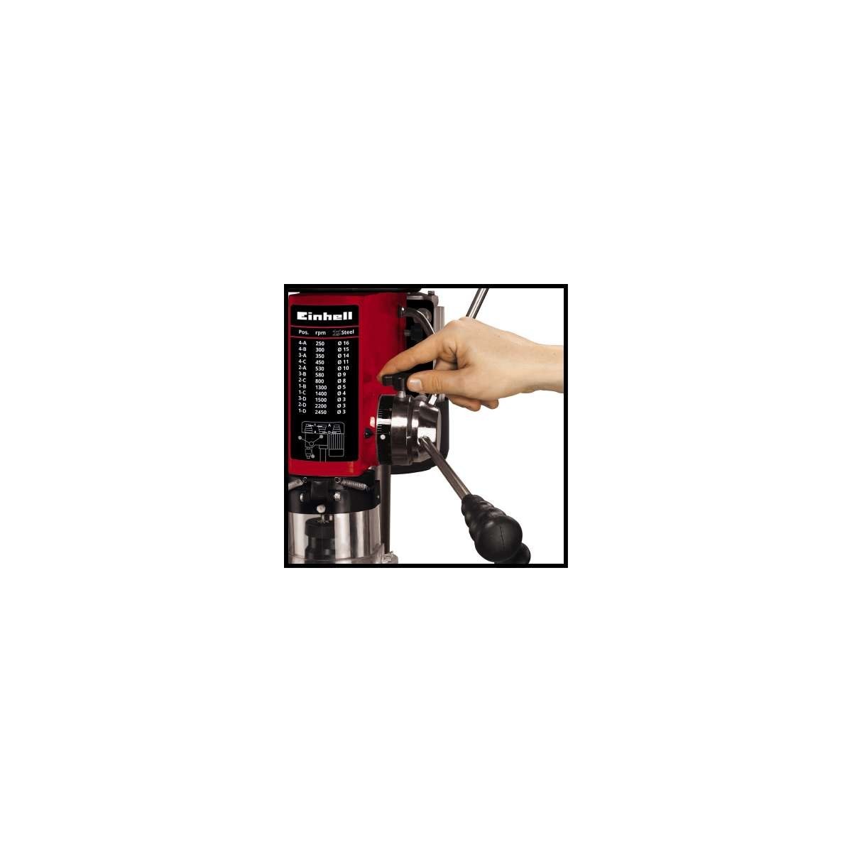Grazie al trapano a colonna TC-BD 630 di Einhell è possibile effettuare fori esatti e precisi della dimensione desiderata in pezzi da lavorare di metallo o legno. Il trapano a colonna TC-BC 630 fornisce il corretto numero di giri per ogni materiale grazie alla regolazione su 12 posizioni. Il robusto mandrino a cremagliera da 1,5 a 16 millimetri è adatto per eseguire fori di ogni dimensione necessaria. Inoltre, il cono morse è abbinato a un attacco MK2 e di conseguenza garantisce ancor più flessibilità. L'arresto di profondità facilmente regolabile consente di eseguire forature perfette e veloci anche in serie. Il trapano a colonna è inoltre estremamente versatile grazie al suo piano a forare regolabile in altezza, inclinabile e ribaltabile. Il mandrino con cuscinetto a sfera è concepito per garantire un esercizio prolungato nel massimo del comfort. La maniglia gommata nel volantino a croce consente un dosaggio della forza preciso e un'impugnatura morbida. La sicurezza dell'utente è garantita dalla protezione antitrucioli ripiegabile e dall'interruttore di accensione/spegnimento con azionamento a tensione zero. Nella dotazione è già compresa una morsa per il fissaggio del pezzo da lavorare.