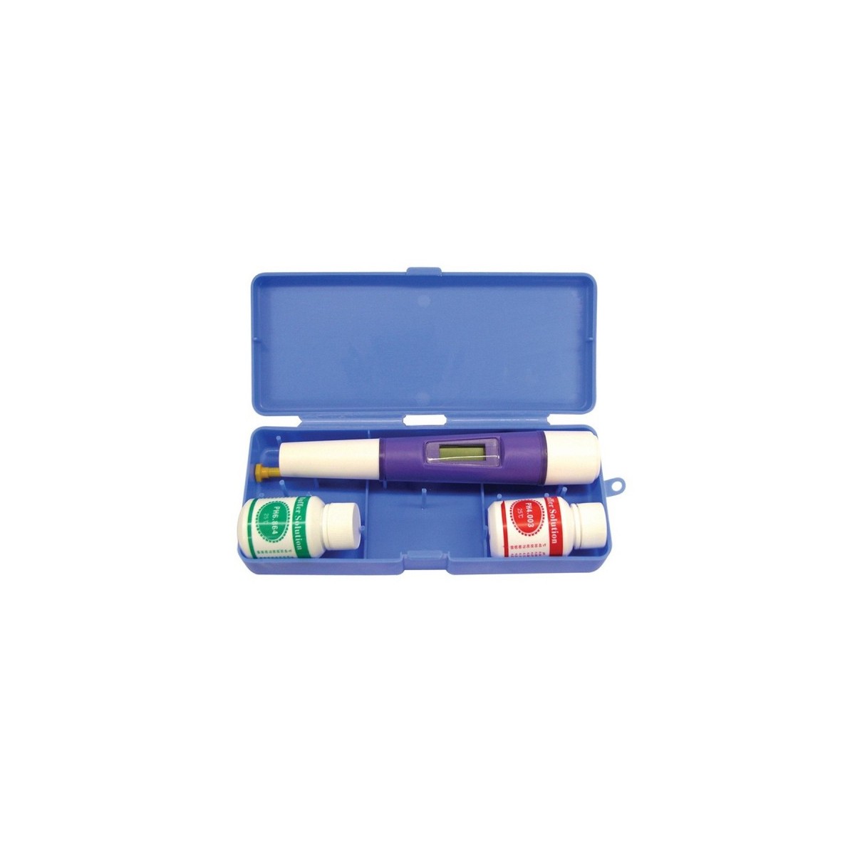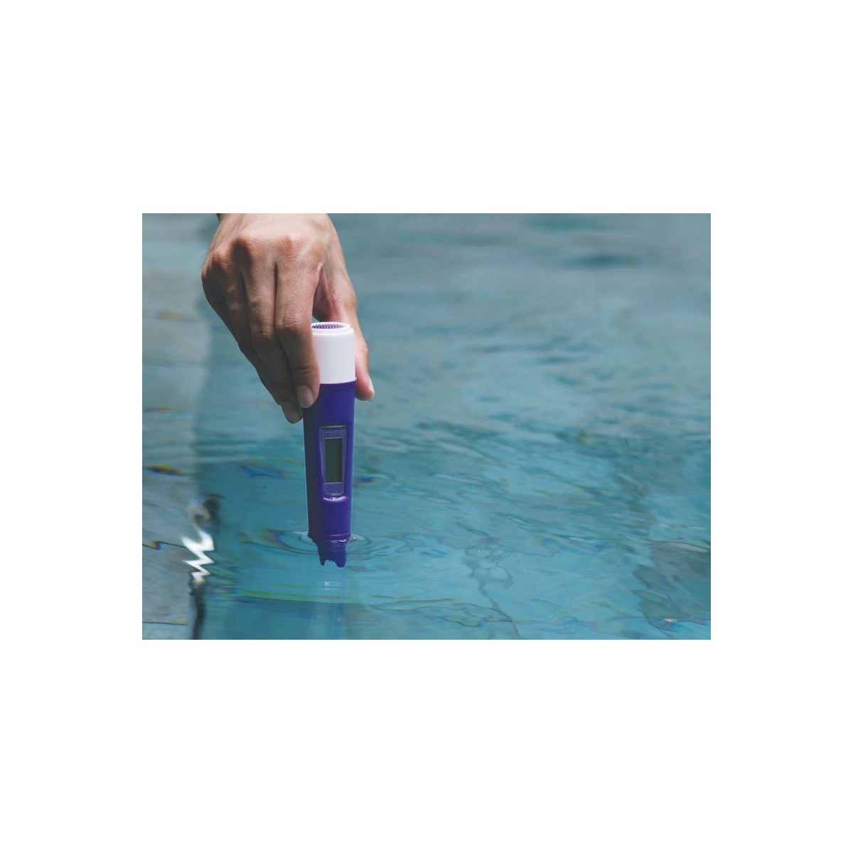 Misuratore elettronico pH per piscine con un intervallo di 0,00 Ph - 14,00 pH. Questa penna funziona con 4 batterie LR44 da 1,5 V incluse. Controllate il livello di pH della piscina o della spa in modo semplice e veloce con questo accessorio indispensabile. Include due flaconcini di liquido reagente e un cacciavite speciale per la calibrazione. E' così semplice da usare che basta metterlo in acqua e aspettare che il risultato venga visualizzato sullo schermo.