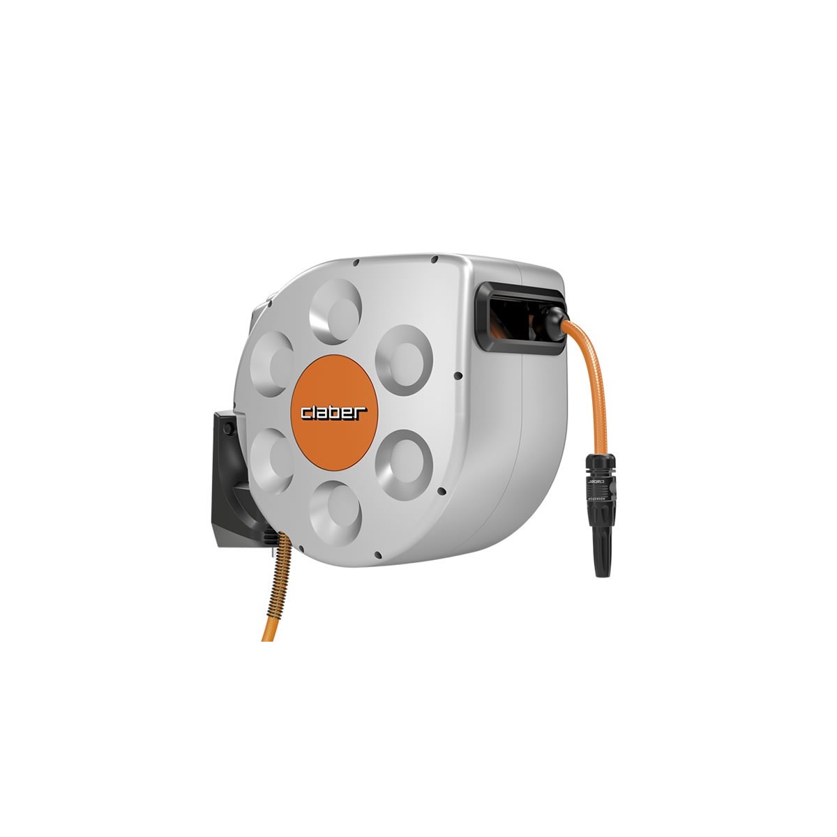 Avvolgitubo con riavvolgimento automatico, dotato di esclusivo meccanismo Slow Rewind per un utilizzo confortevole e sicuro. Pronto all’uso con 30 m di tubo speciale indeformabile con superficie anti-attrito per un avvolgimento rapido e perfetto. Costruito con materiali resistenti agli urti e ai raggi solari per garantire la massima durata nel tempo. Il supporto a muro in resina rinforzata, con perno in alluminio inossidabile, permette di orientare fino a 180° l’avvolgitubo nella direzione di utilizzo, evitando pieghe e strozzamenti del tubo. Dotato di prolunga per il collegamento al rubinetto (2 m), presa 3/4 (20 - 27 mm) per il collegamento al rubinetto, raccordi automatici e lancia a spruzzo. Completo di supporto a muro, viti e tasselli per il montaggio a parete.