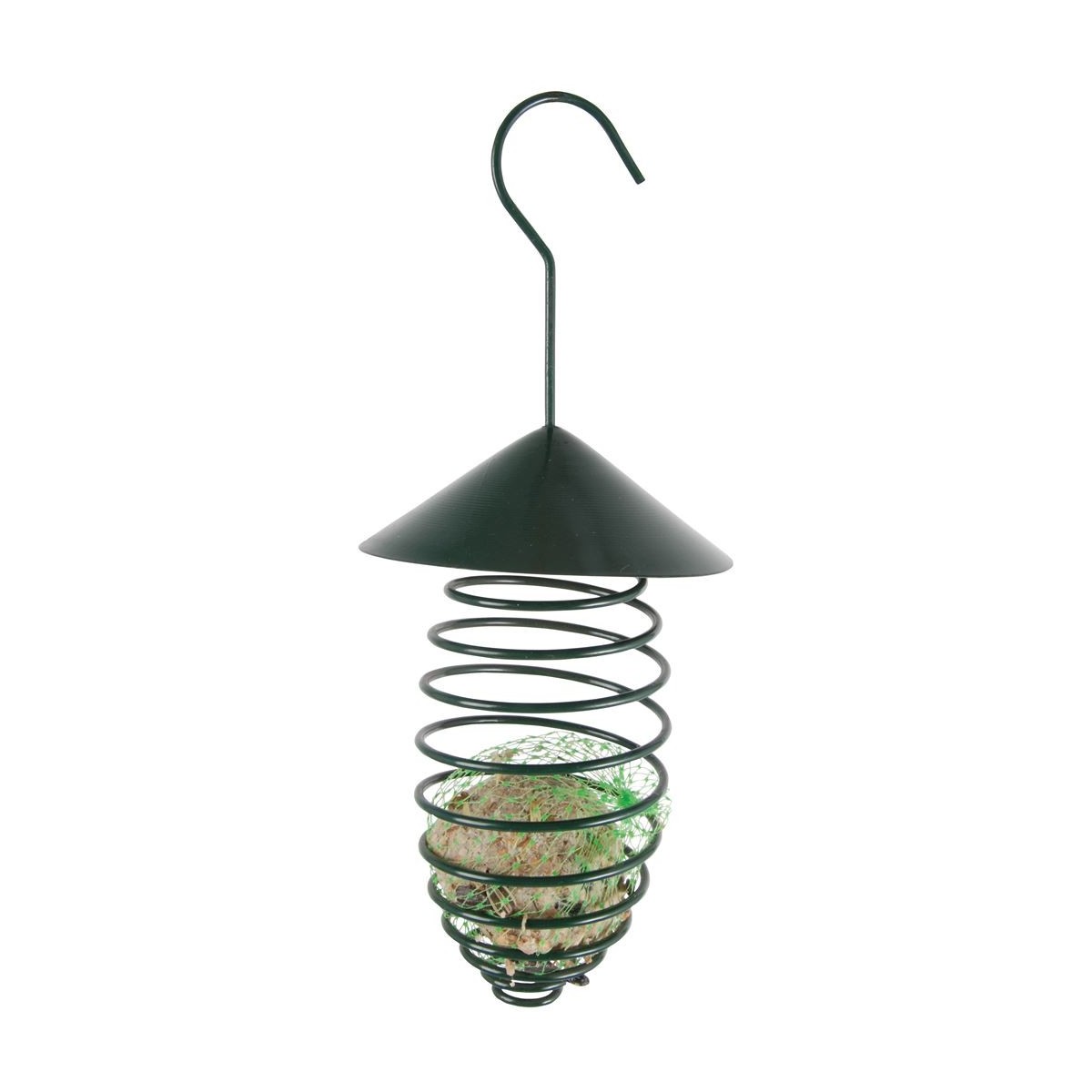 Semplice e pratica spirale per rendere disponibile ed accessibile agli uccellini il mangime. Con tetto per salvaguardare il mangime, colore verde. Da questo portamangime si nutre: la Cinciarella, la Cincia dal ciuffo, il