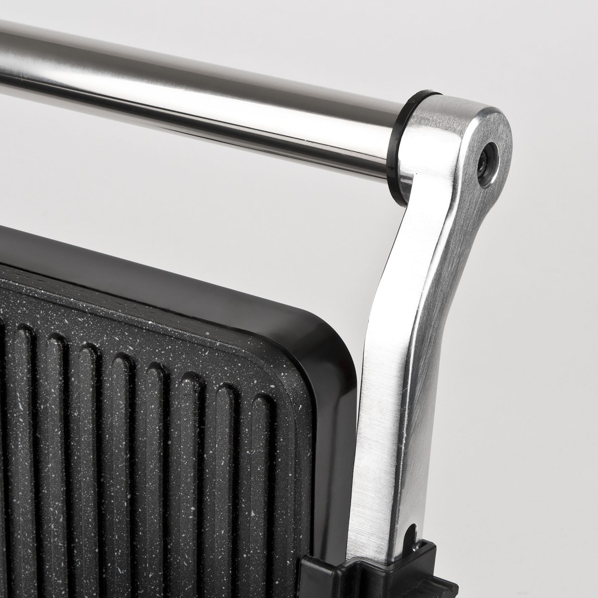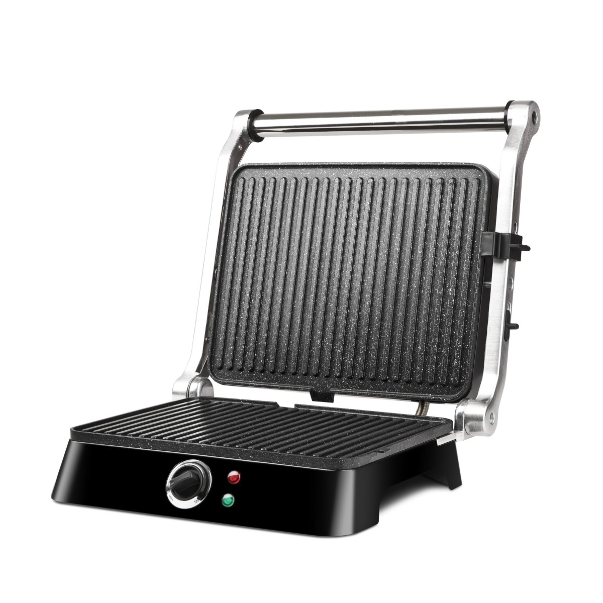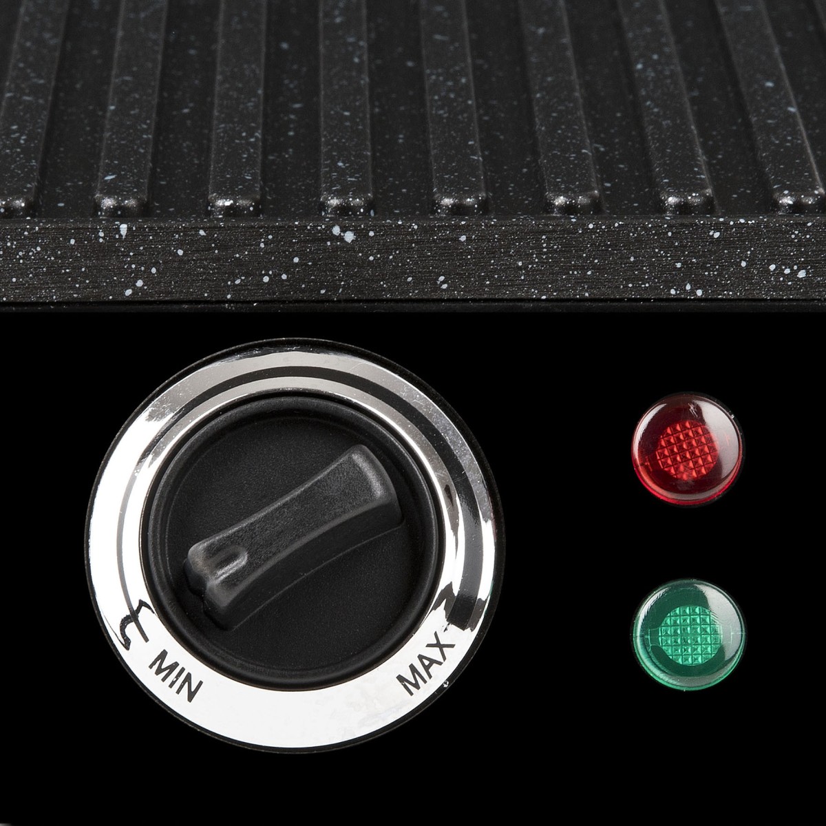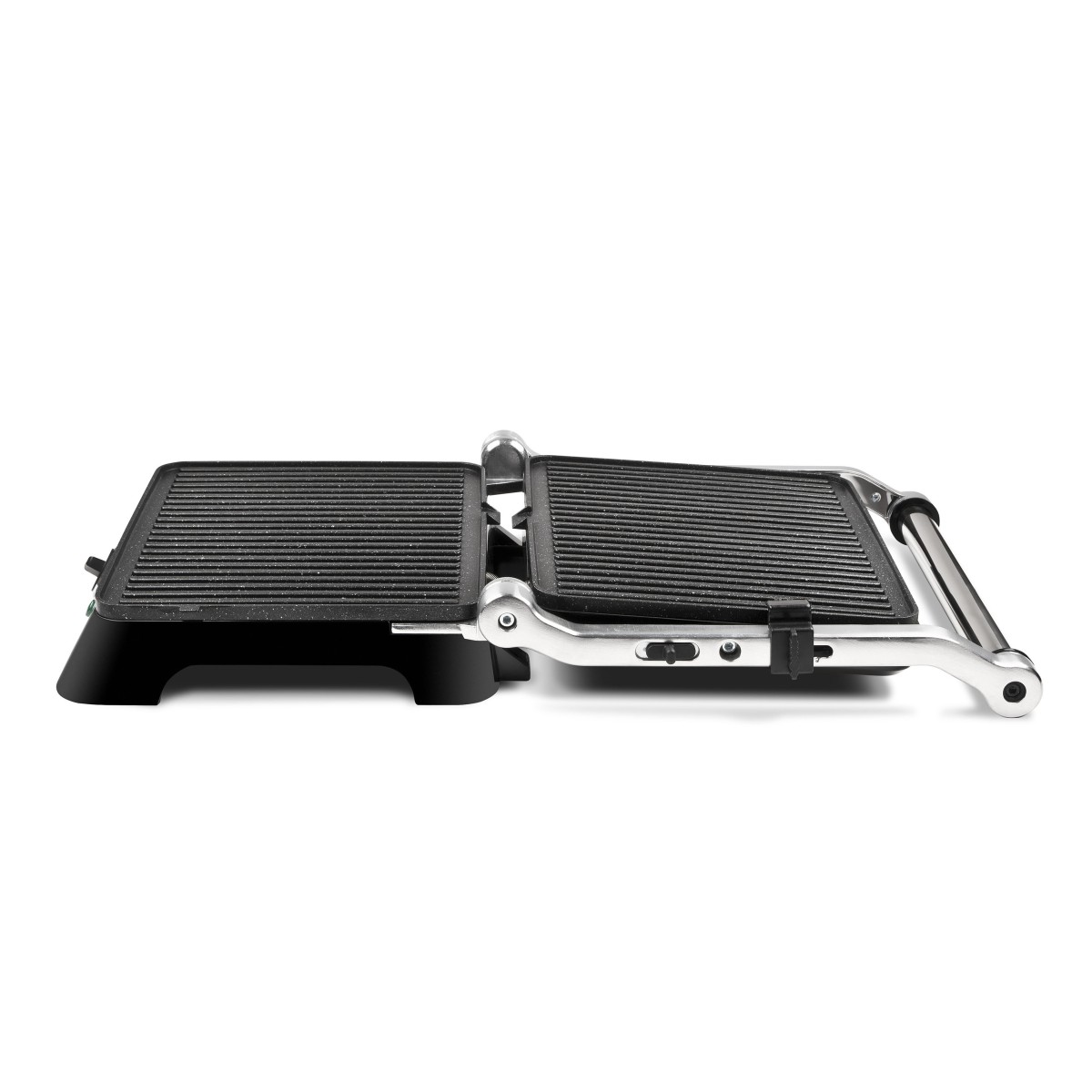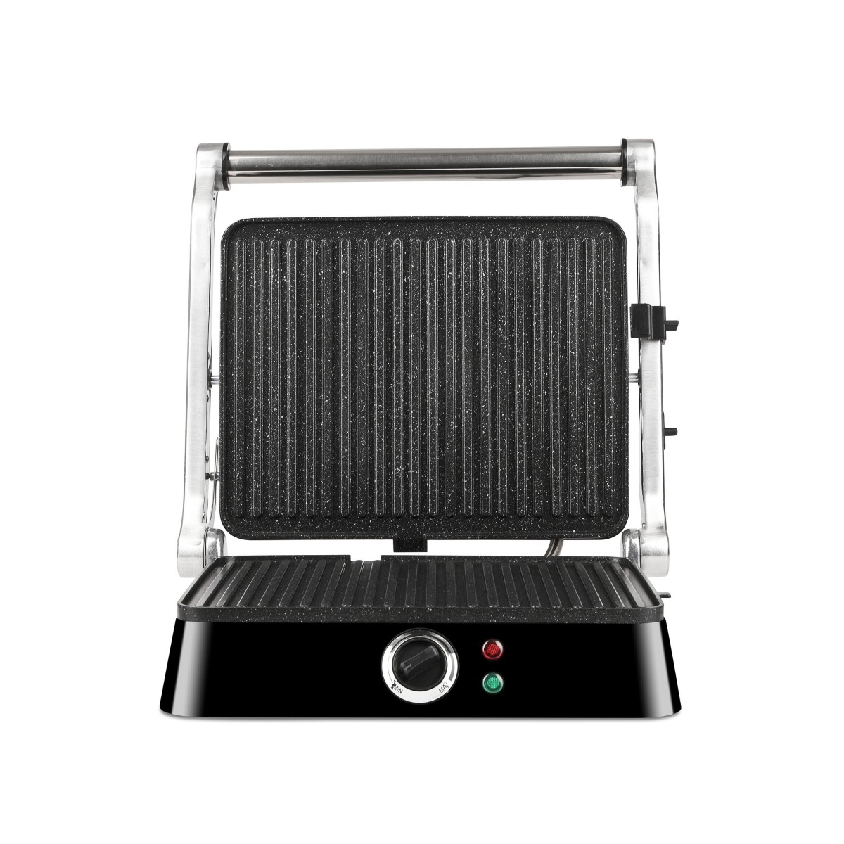 Dalle dimensioni compatte e dal corpo realizzato in acciaio inox, la bistecchiera BS44 può essere utilizzata come una tradizionale griglia a contatto, come tostiera per preparare gustosi sandwich e panini americani oppure come mezza piastra per grigliare pesce o carne. Dispone di un ampia maniglia antiscottatura e nella parte frontale sono posizionate le spie di accensione e “pronto calore”. Il piano cottura è dotato di due ampie piastre antiaderenti ondulate con speciale rivestimento “Petravera”: questo innovativo rivestimento ad effetto pietra consente una cottura più sana, naturale e senza grassi e garantendo un’eccellente antiaderenza e incredibile resistenza al calore, per grigliare in modo superlativo.