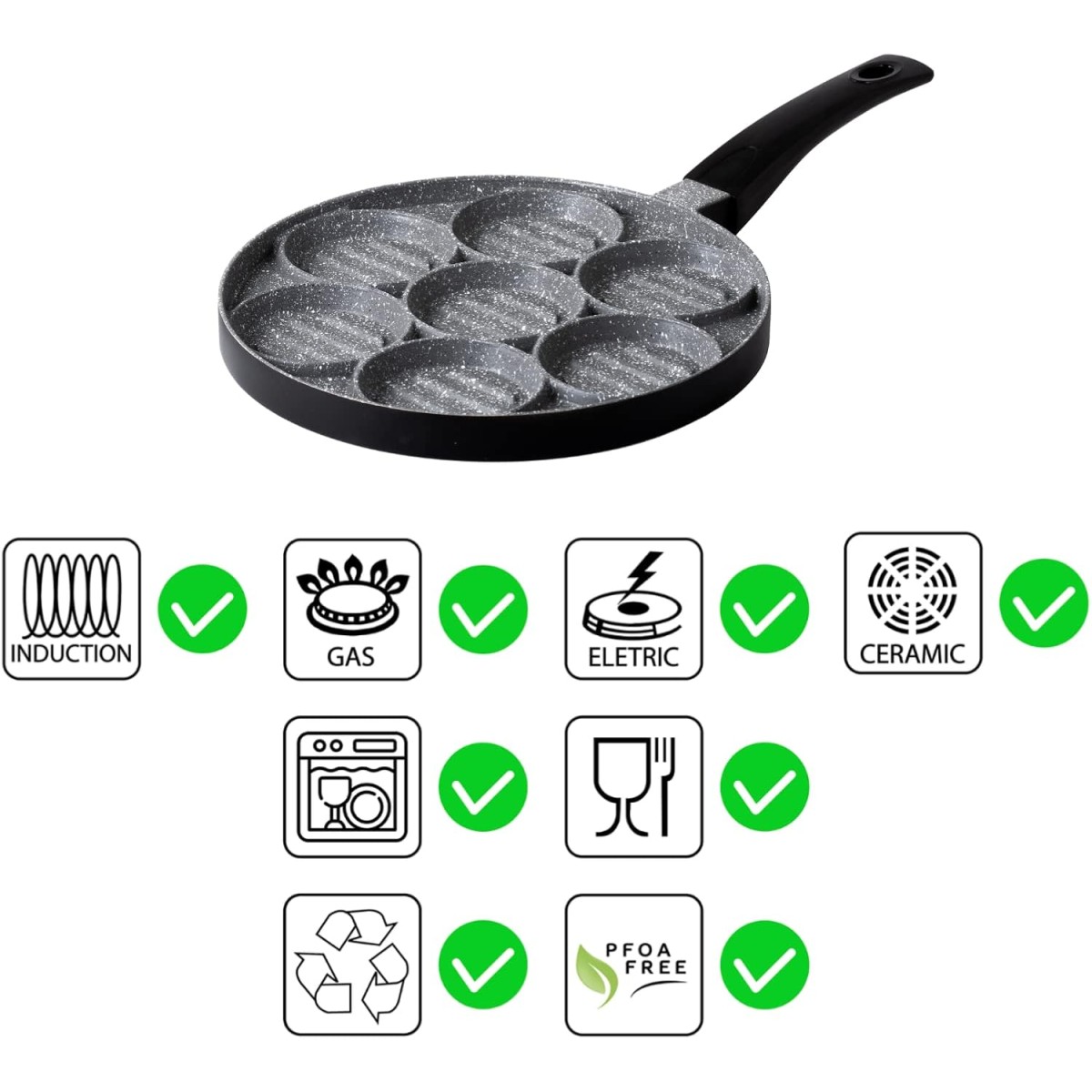 - [SPECIFICHE]: diametro 26 cm, con 7 stampini per la cottura di Hamburger.