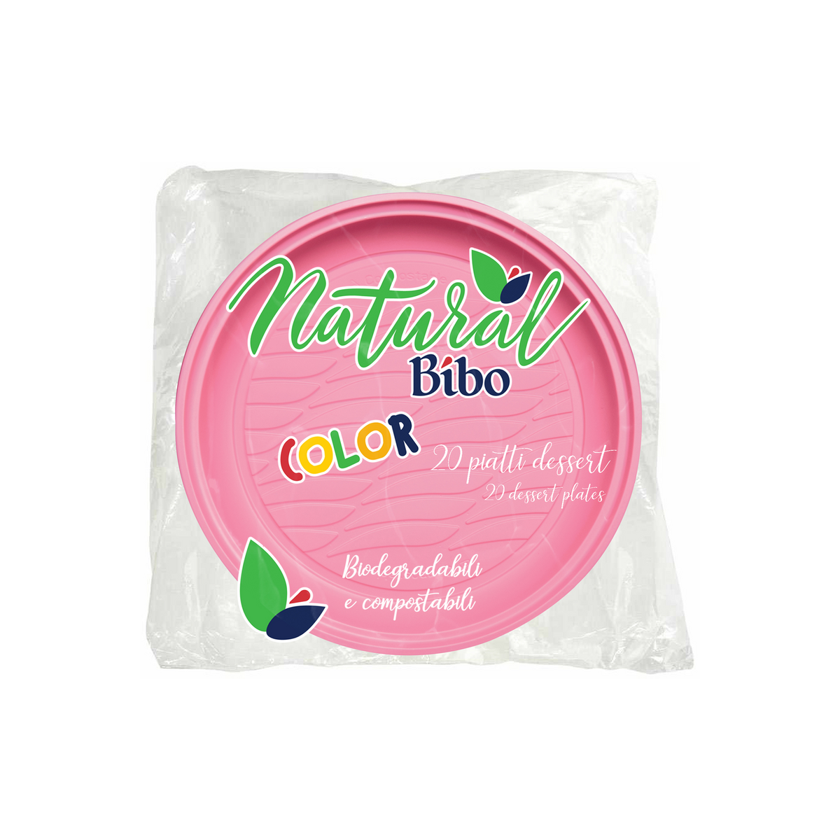Piatto Piano/Dessert Rosa 20pz BIBO