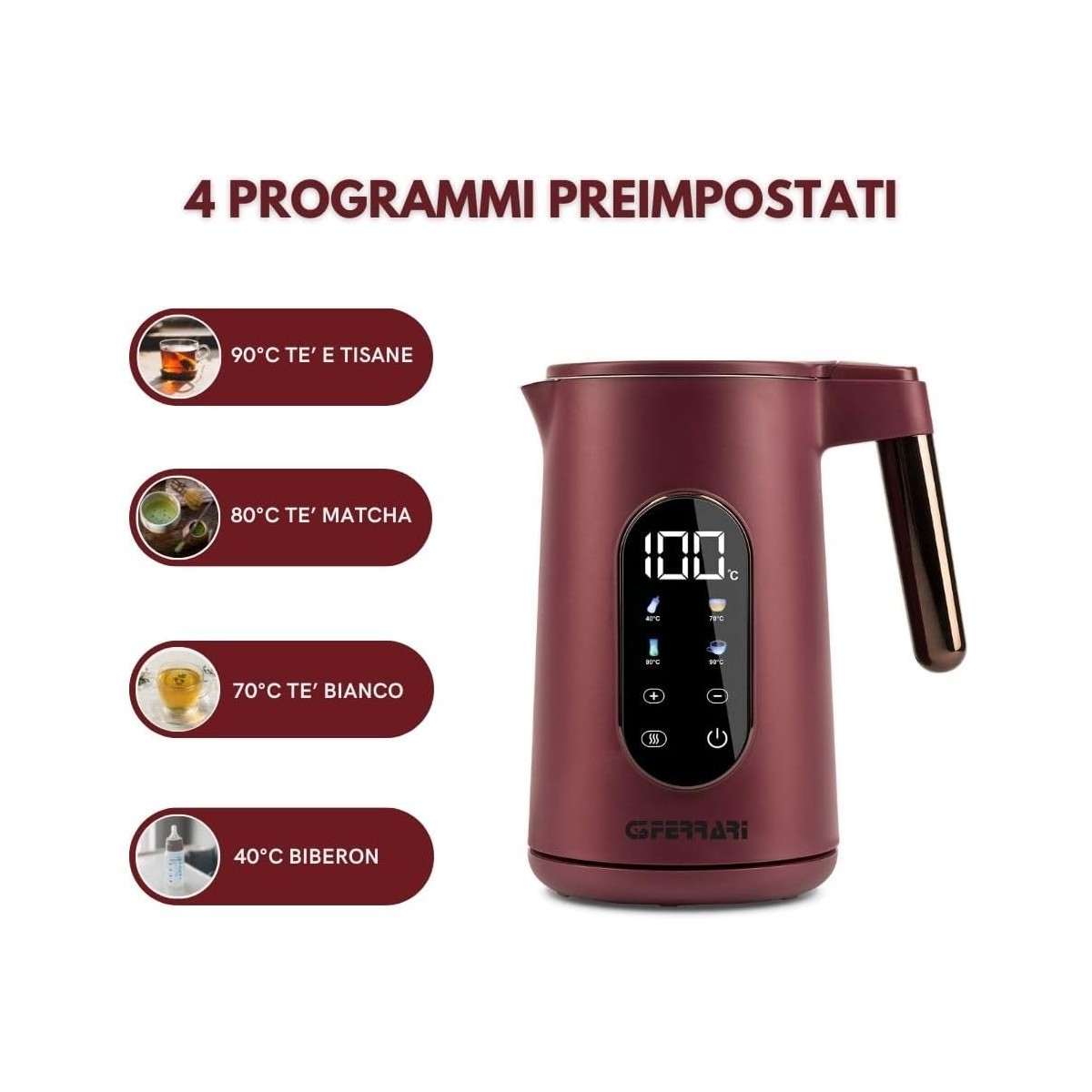 Il Bollitore Tisaniera Tech offre una capacità di 1,7 litri, perfetta per preparare più tazze di tè o tisana in un'unica soluzione, ideale per la famiglia o per gli ospiti.