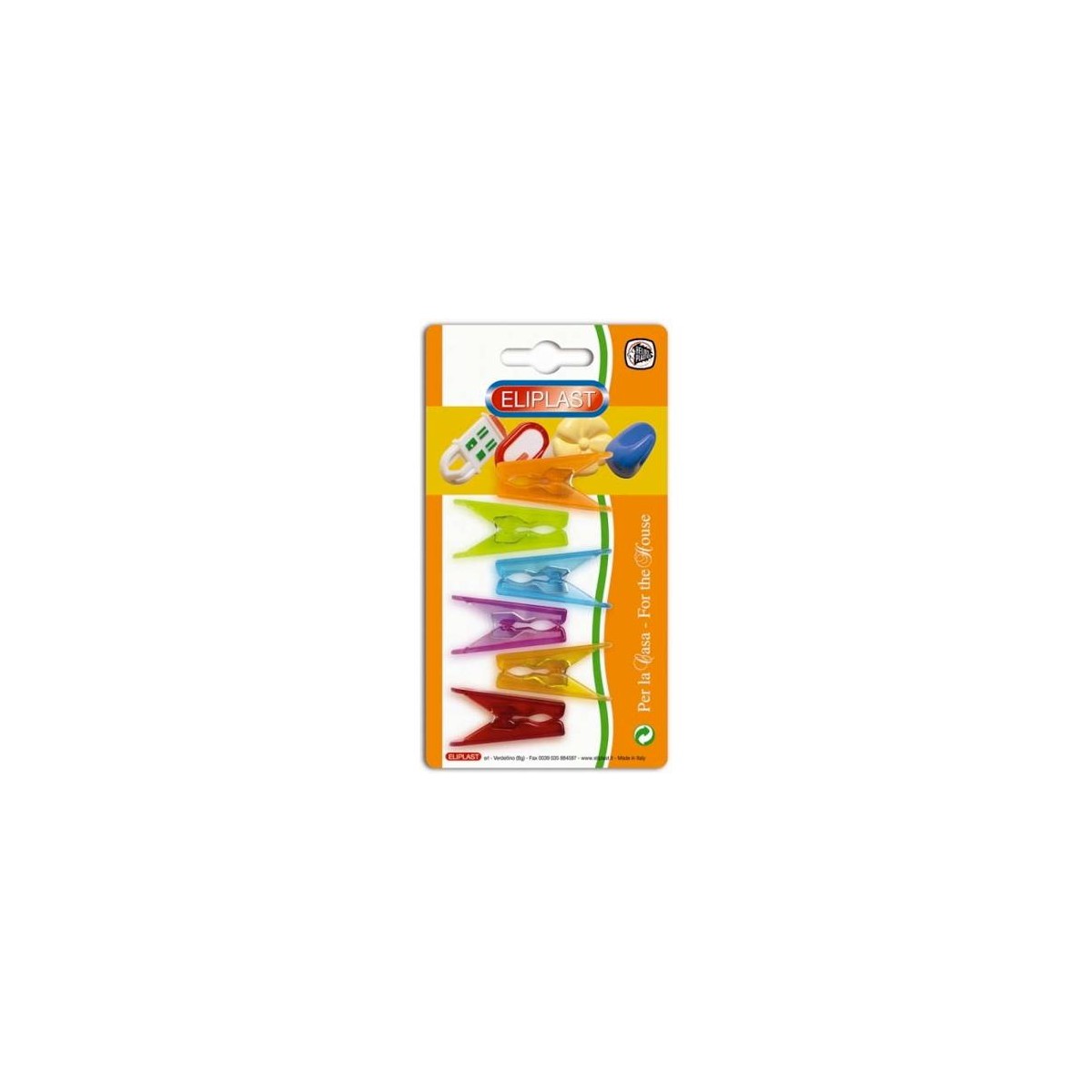 La molletta di Eliplast è realizzata in polistirolo, materiale resistente e di qualità. Disponibile in diversi colori assortiti nella confezione, ha un'ottima tenuta è ideale come ferma fogli, per chiudere i pacchetti di pasta, farina, zucchero ecc ecc. Dimensioni: 4,6x2,1 cm