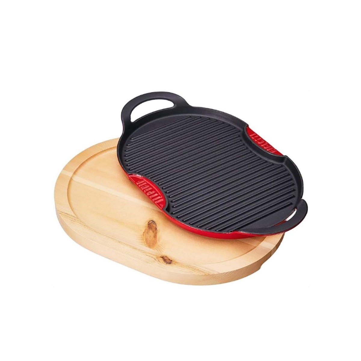 La griglia è ideale per molteplici preparazioni: grigliare carne, verdure o pesce, sfruttando la capacità della ghisa di assorbire e trattenere il calore a lungo. Col tempo, la superficie porosa migliora le prestazioni, assorbendo i sapori e le proprietà nutritive degli alimenti.