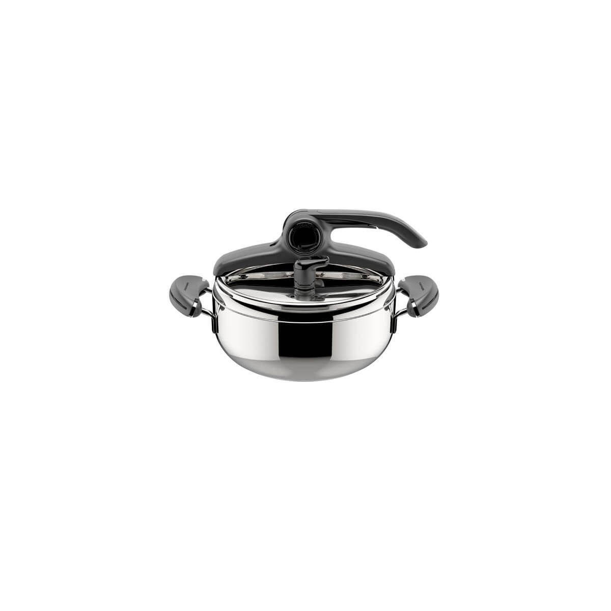 La pentola a pressione è uno strumento versatile perché consente la cottura a vapore, ad immersione e a rosolatura; è salutare, perché cucinando in pentola a pressione si preservano fino al 35% di vitamine e di sali minerali in più; è veloce, perchè riduce i tempi di cottura fino al 50%.