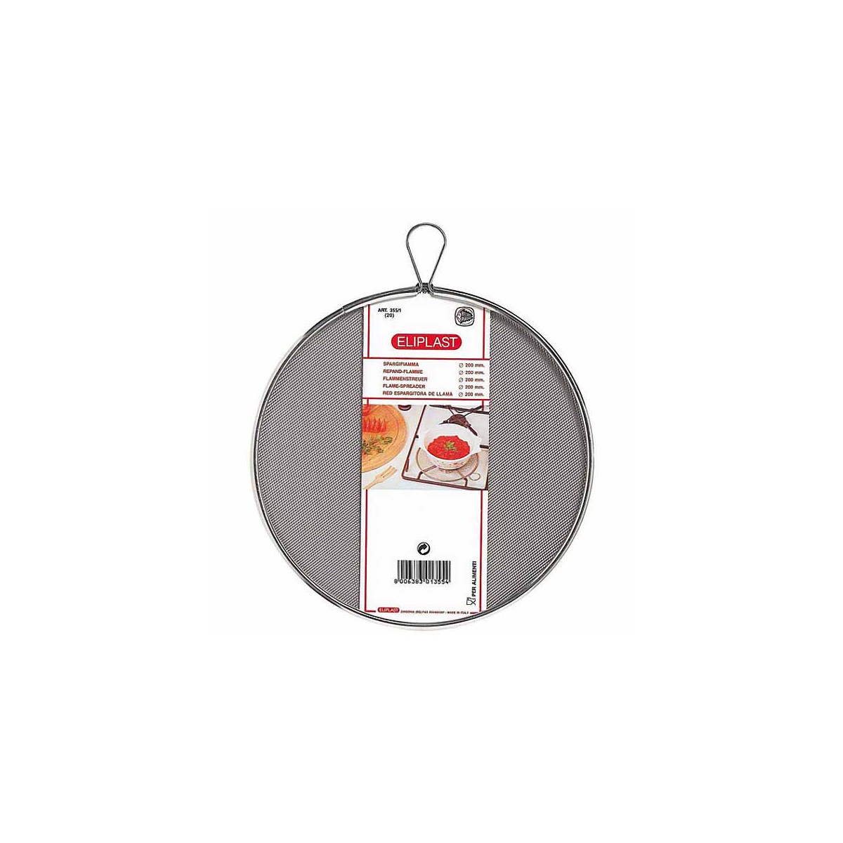 Retine spargifiamma diametro 17 cm, in acciaio inox. Utilizzabile anche come filtro e sottopentola