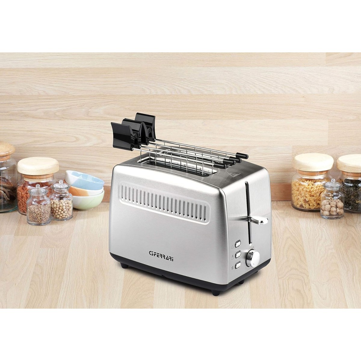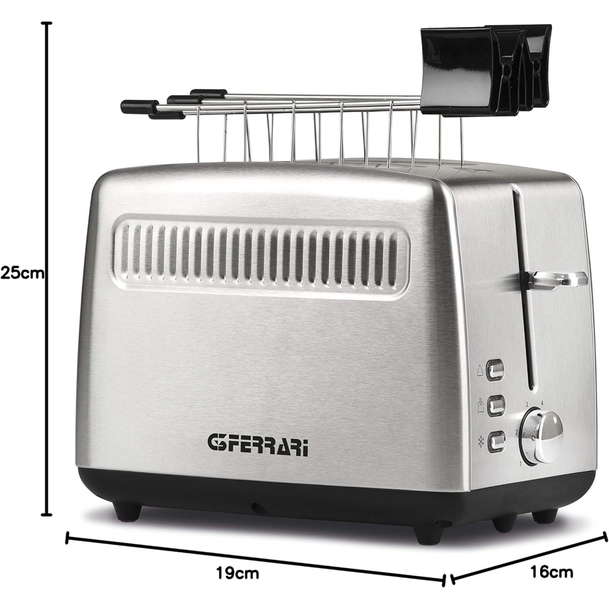 Le due pinze in acciaio inox alimentare in dotazione sono utili non solo per contenere grandi fette di pane o toast farciti, ma anche per recuperare più agevolmente i cibi più piccoli inseriti nella feritoia e portarli direttamente in tavola.