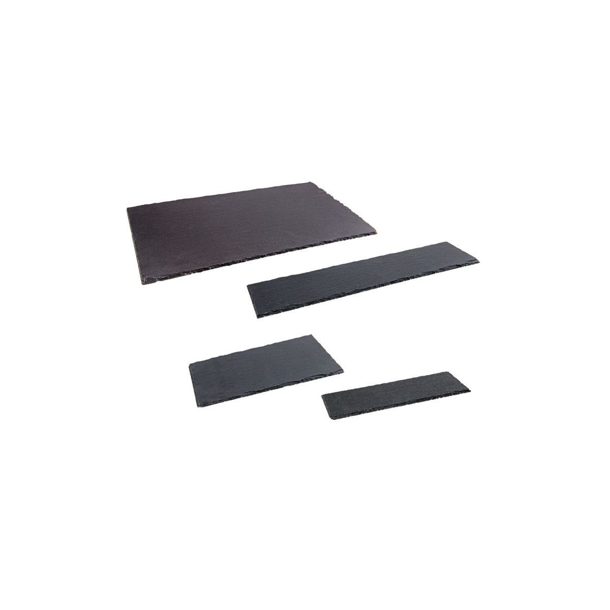 Piano rettangolare in ardesia naturale di cm 10x30 con spessore di mm 4-7. Perfetto per un servizio moderno di tendenza ed ideale per aperitivi sfiziosi. La nuova linea di piani realizzati in ardesia naturale è caratterizzata dai bordi frastagliati che mettono in evidenza la naturale struttura della pietra. L'ardesia (detta anche pietra di Lavagna) è una particolare varietà di roccia metamorfica allotigena di origine sedimentaria, facilmente divisibili in lastre sottili, piane e leggere. La superficie di ciascun piano è trattata con un rivestimento impermeabile, idoneo al contatto con gli alimenti. I piedini antiscivolo applicati sulla parte posteriore garantiscono la stabilità su qualsiasi superficie.