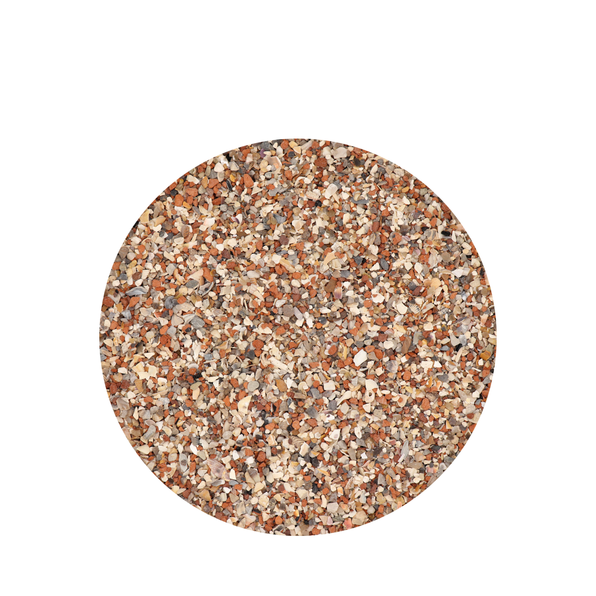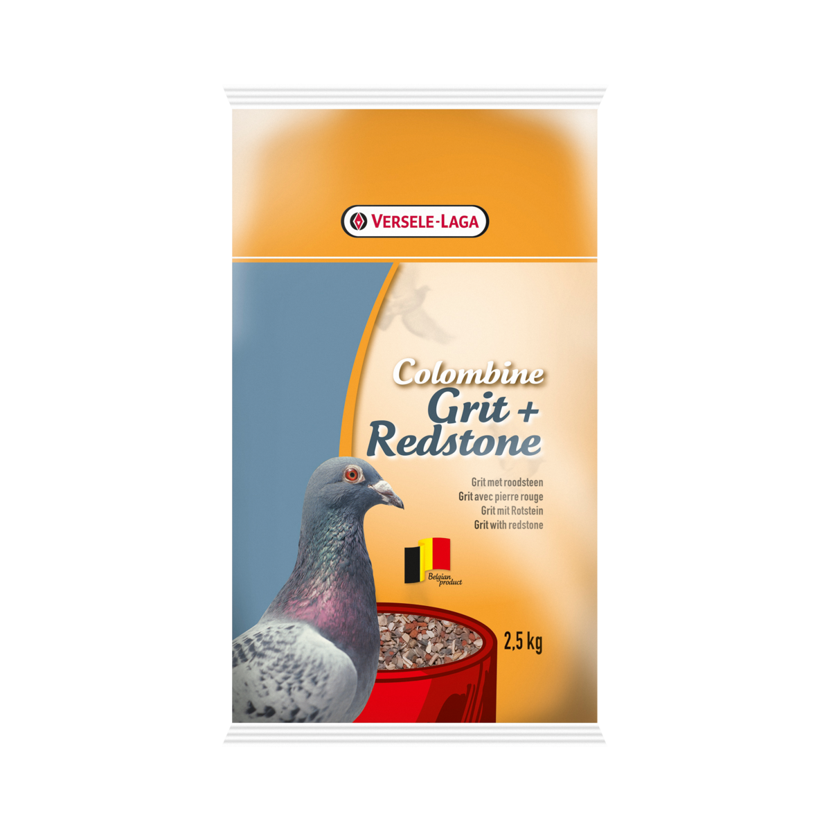 Colombine Grit + pietra rossa contiene sassolini, pietre di selce, gusci di ostriche, conchiglie, pietra rossa e carbone. I sassolini aiutano la digestione dei colombi.